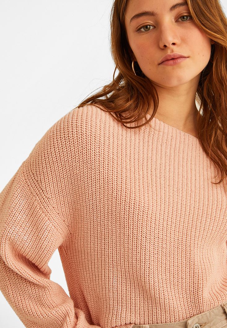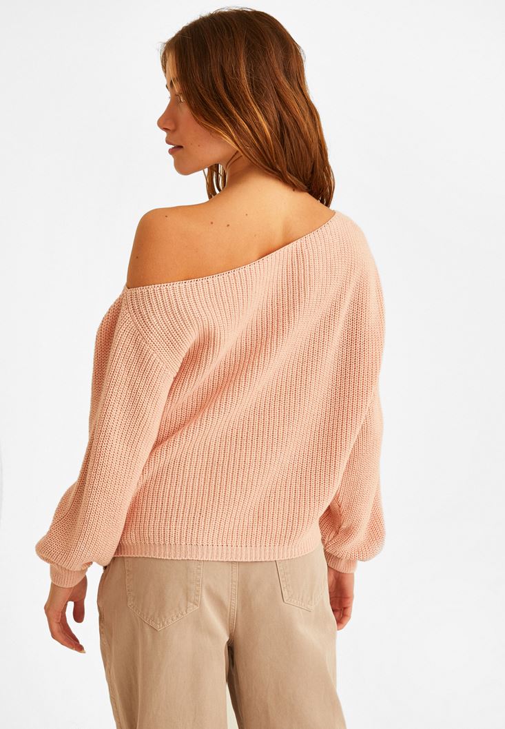 Pembe Kayık Yaka Asimetrik Kazak