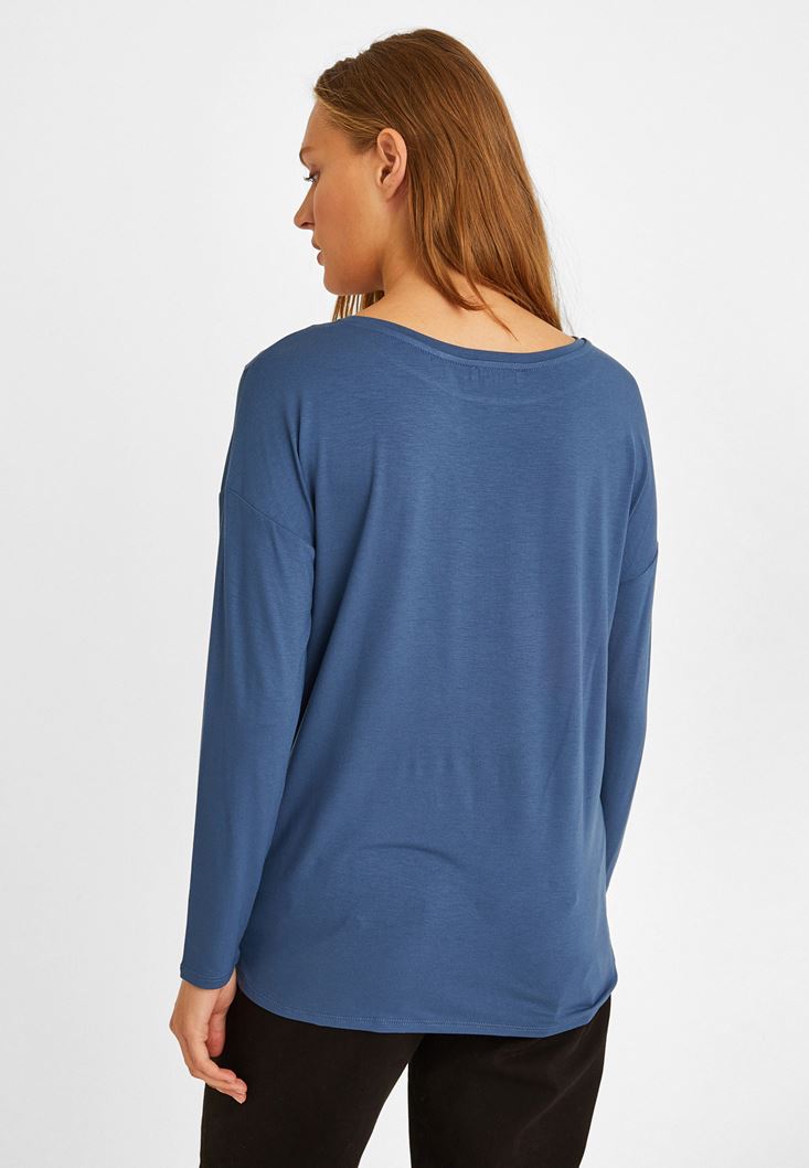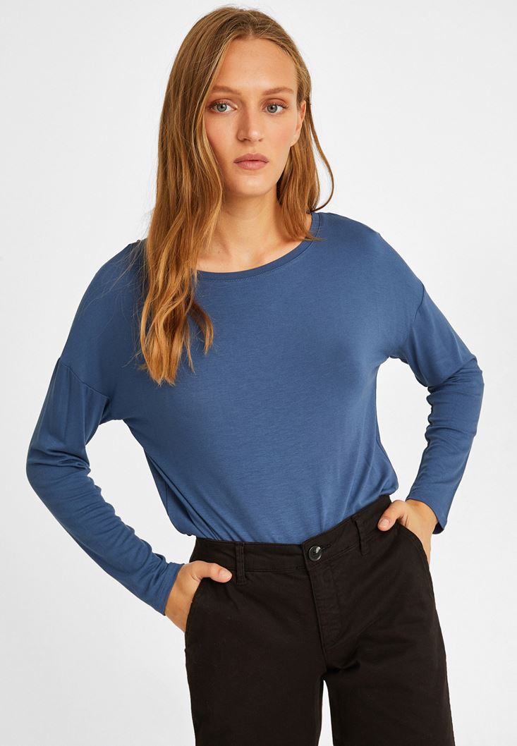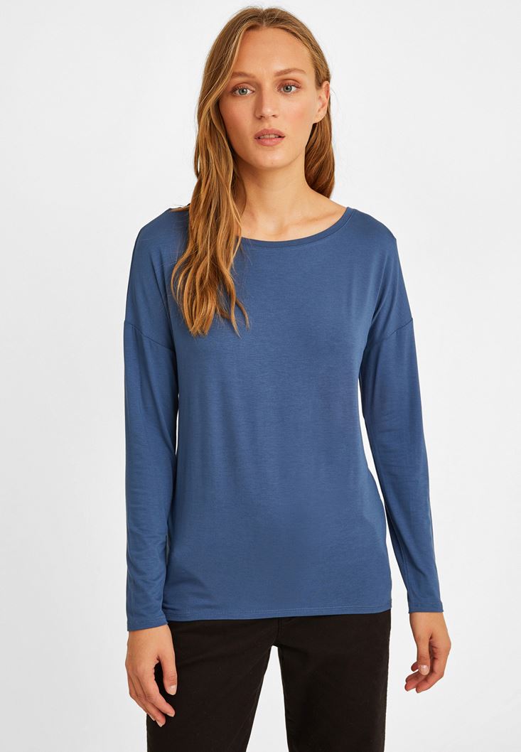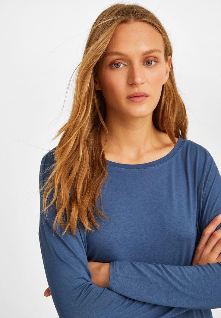 Lacivert Kayık Yaka Bluz