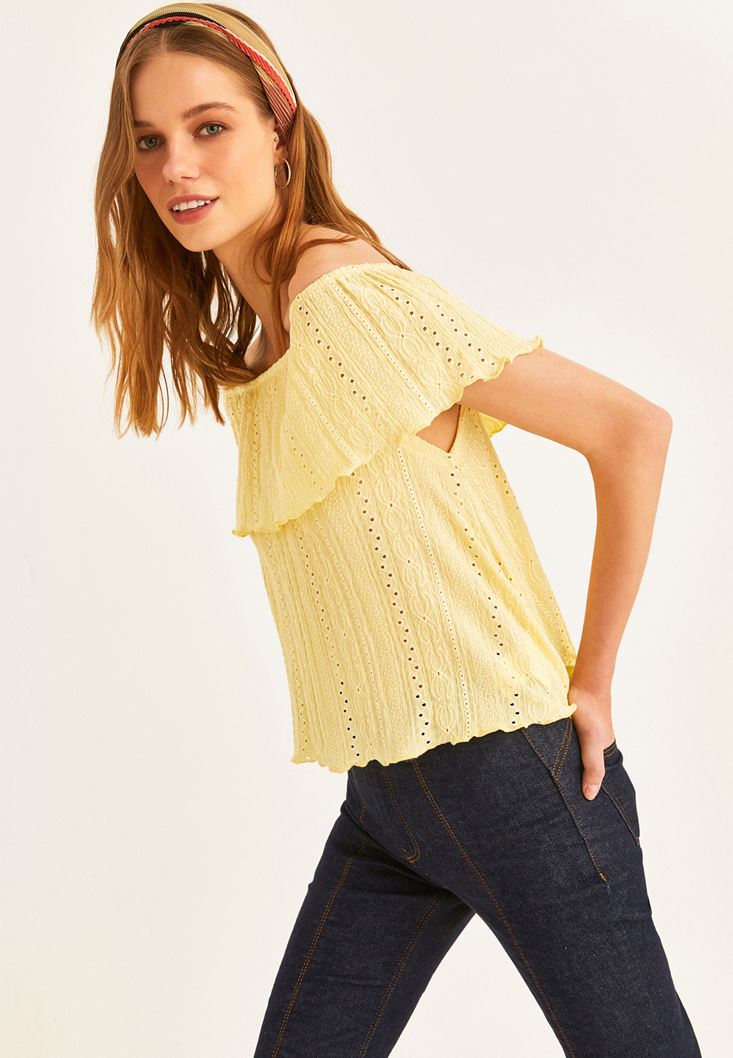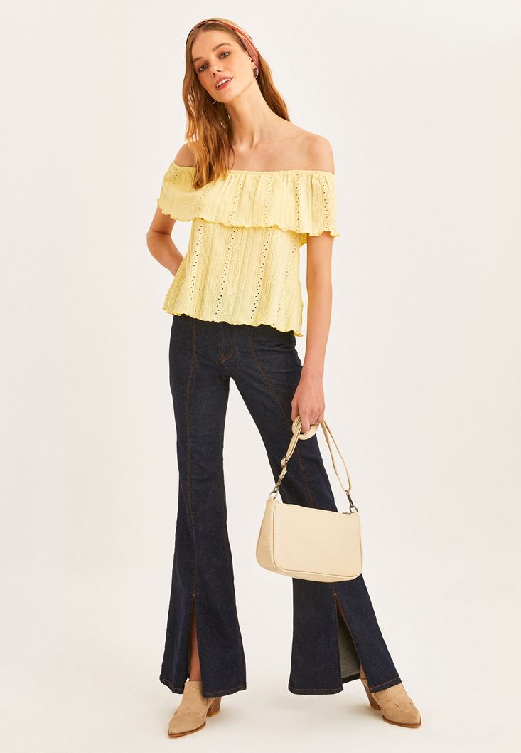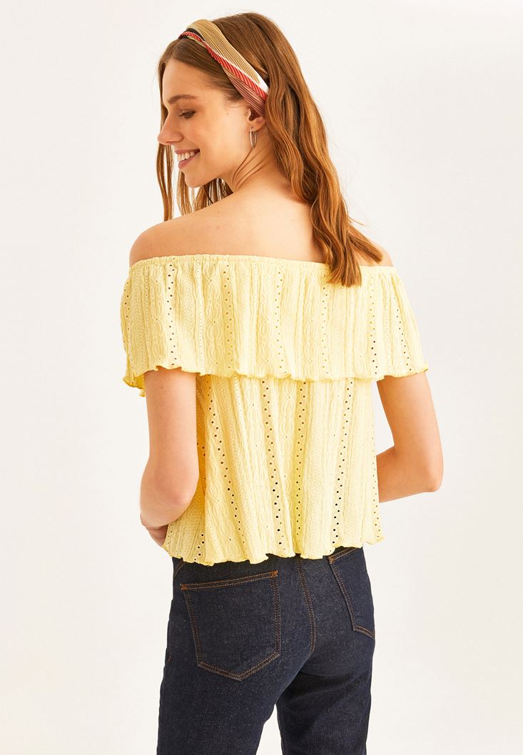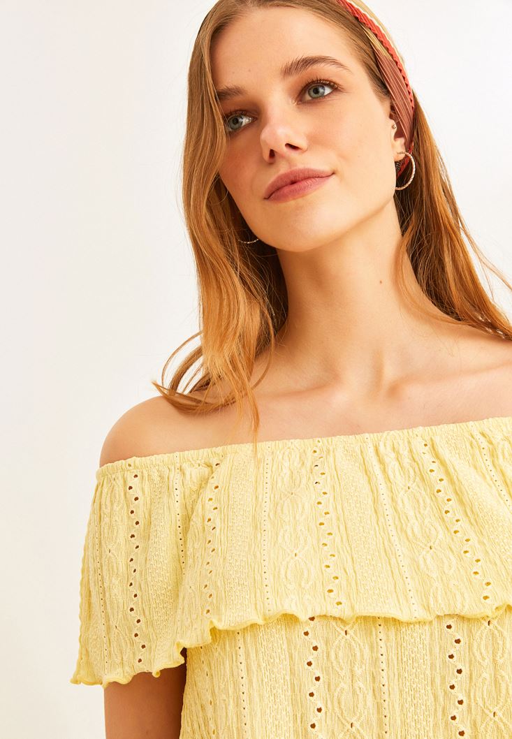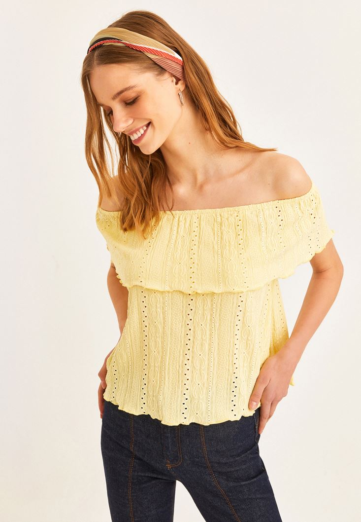 Kayık Yaka Bluz Modeli, hoş dokusu ve hareketli görünümü ile Oxxo'da sizlerle buluşuyor. Kadın bluz modeli, kayık yaka detayının yanı sıra nakışlı dokusu ile oldukça dikkat çekiyor. Kayık yaka bluz modeli ile bol pantolonları veya mini etekleri rahatlıkla bir araya getirebilirsiniz. Topuklu ayakkabılarla ve askılı çantalarla oluşturacağınız kombinlerde kadın bluz modeline şans verebilirsiniz. Oxxo'nun ilgi çekici dokularla ve göz alıcı detaylarla sizlere sunduğu kayık yaka bluz modelleri ile tarzınızı dilediğiniz gibi ön plana çıkarabilirsiniz.