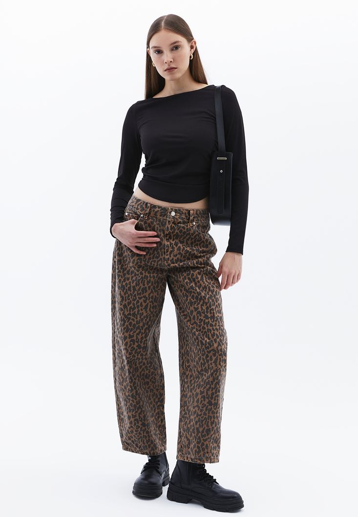 Zarif ve modern: kayık yaka büzgülü tişört! Bedeni saran esnek fit yapısıyla bu kayık yaka tişört, yan kısımlarındaki büzgü detaylarıyla hareketli ve şık bir görünüm sunuyor. Yumuşak ve esnek kumaşı sayesinde gün boyu konforlu bir kullanım sağlar. Kayık yaka tasarımı, omuzlarınızı zarifçe vurgulayarak feminen bir siluet oluşturur. İster yüksek bel pantolonlarla günlük şıklığı yakalayın, ister eteklerle kombinleyerek özel davetlerde dikkat çekici bir stil oluşturun. Gardırobunuzun vazgeçilmez parçalarından biri olacak bu tişörtle, her anınızda zarafeti ve rahatlığı bir arada yaşayın!