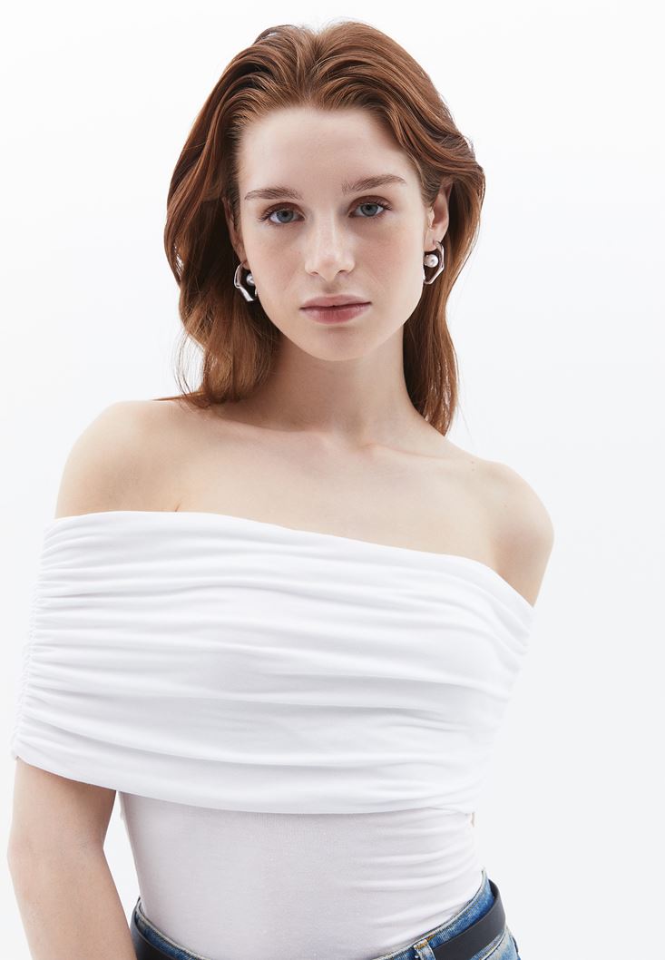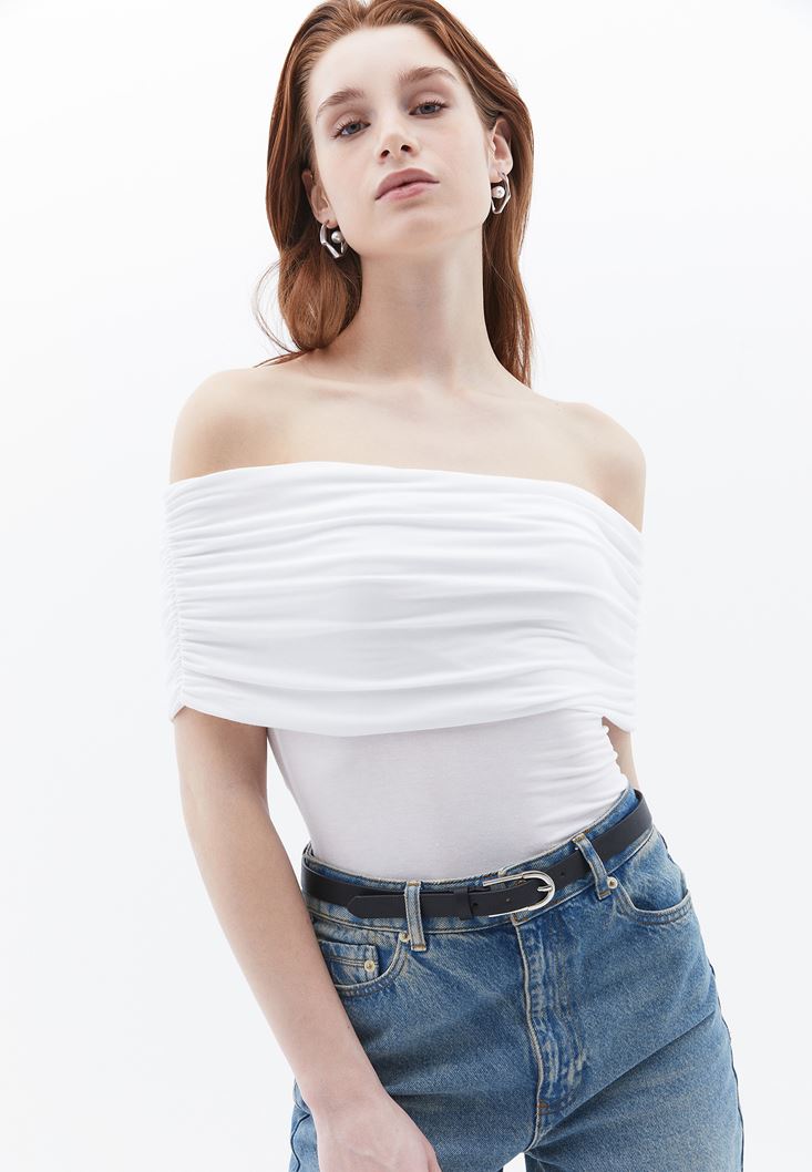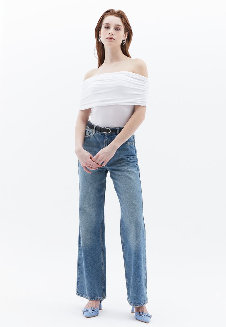 Kayık Yaka Crop Top ve Pantolon Kombini