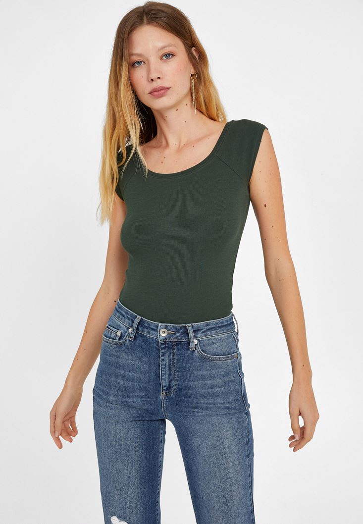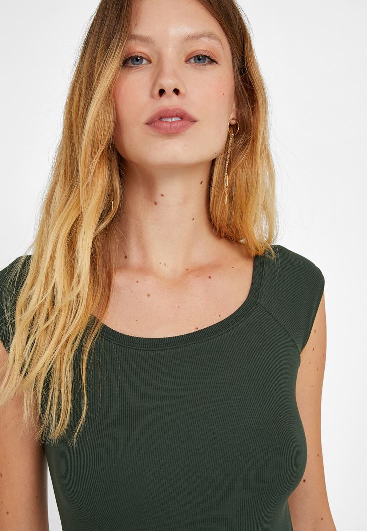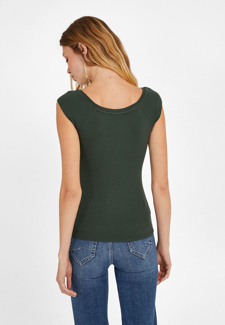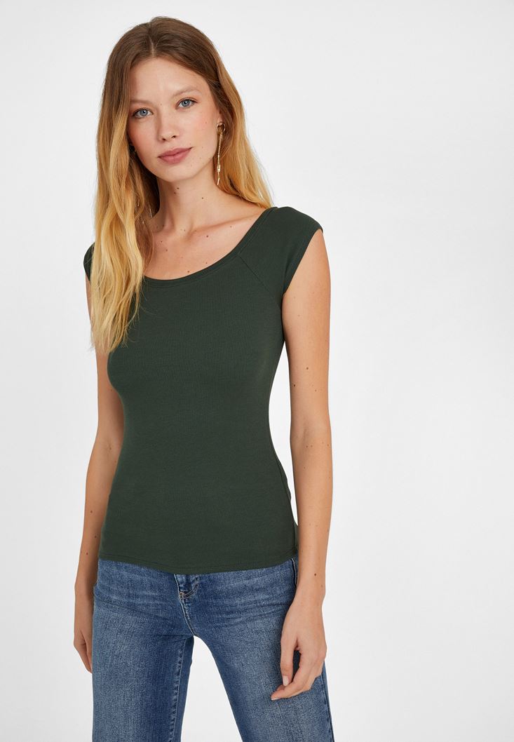 Yeşil Kayık Yaka Kısa Kollu Tişört