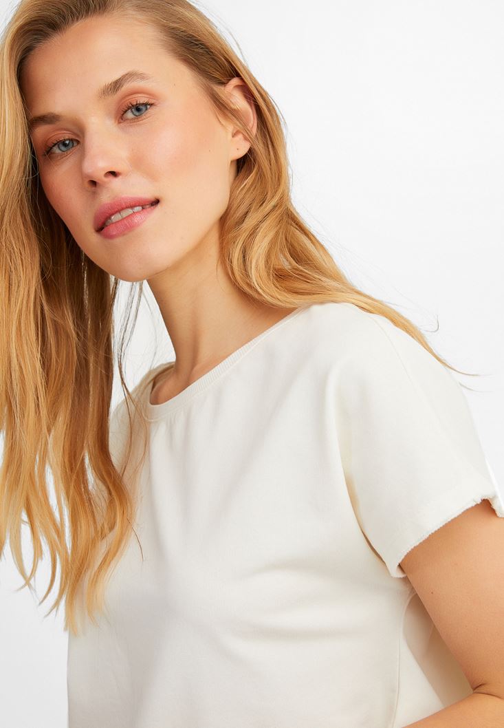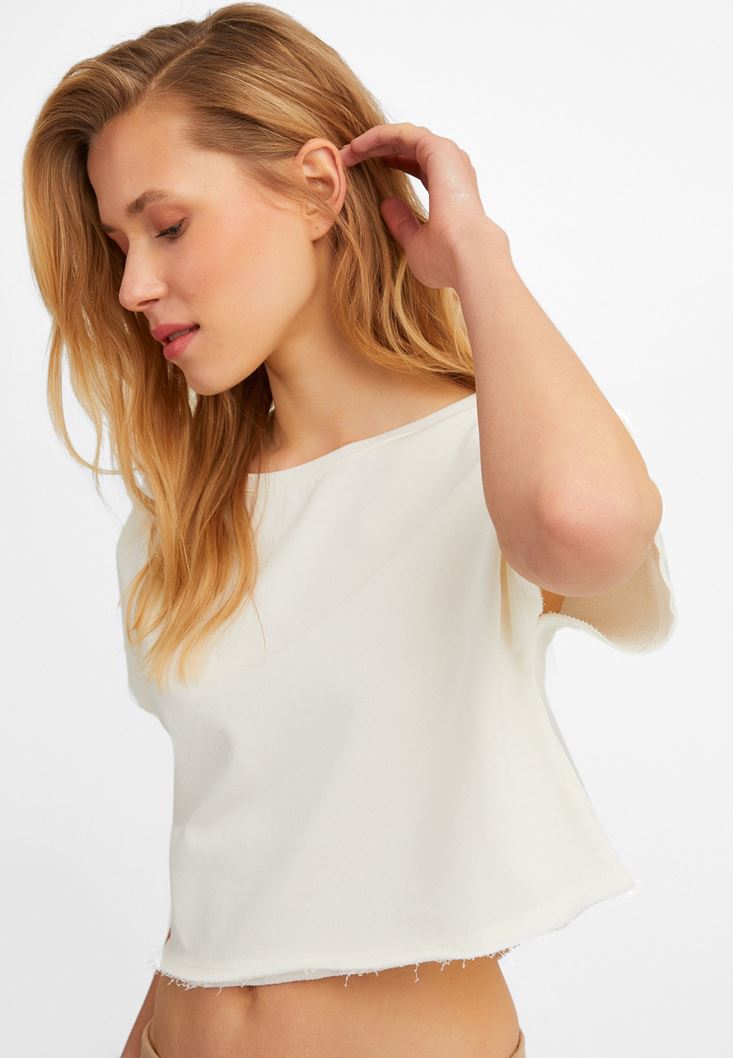 • Bayan Krem Kayık Yaka Kısa Sweatshirt