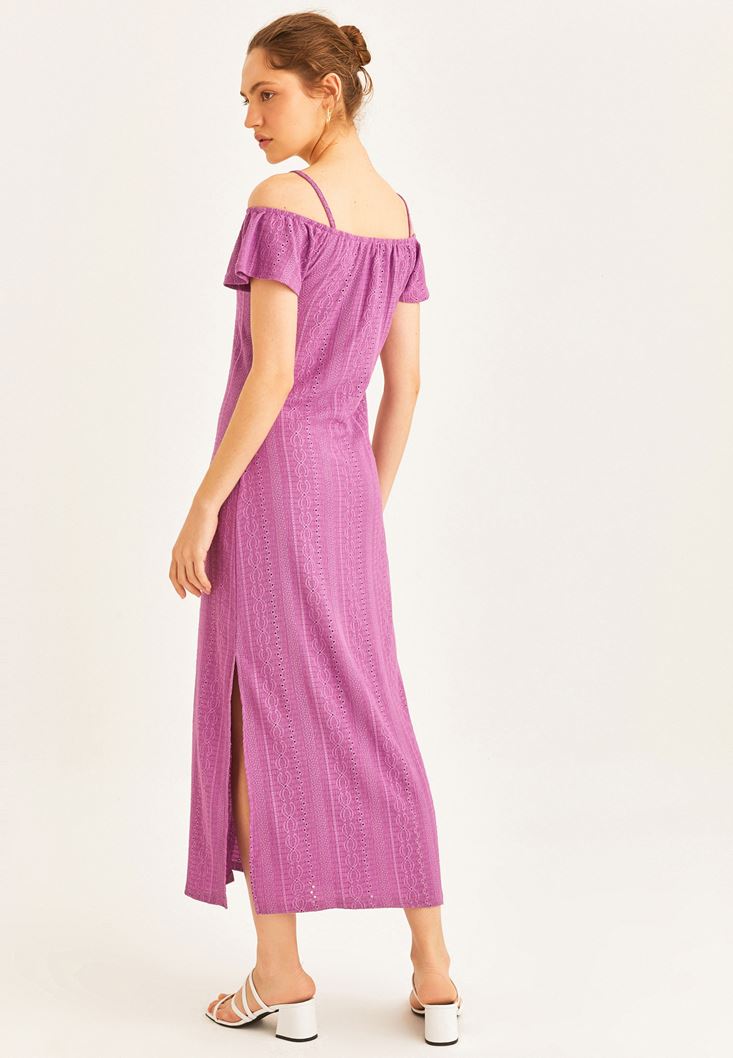 Pembe Kayık Yaka Midi Boy Elbise