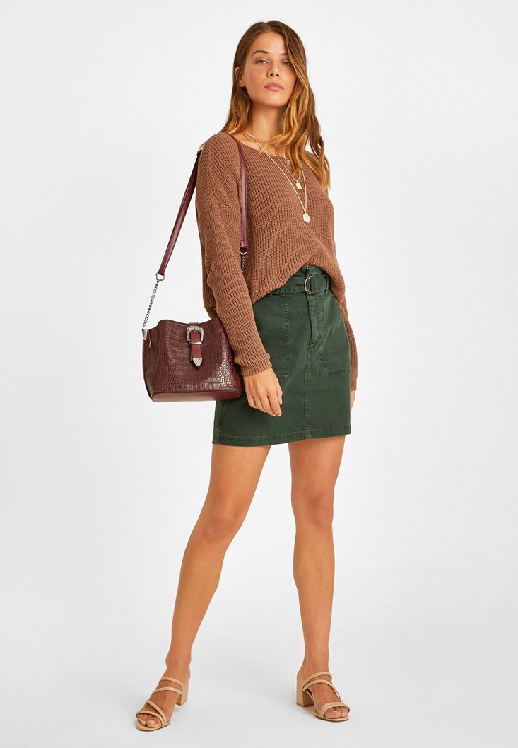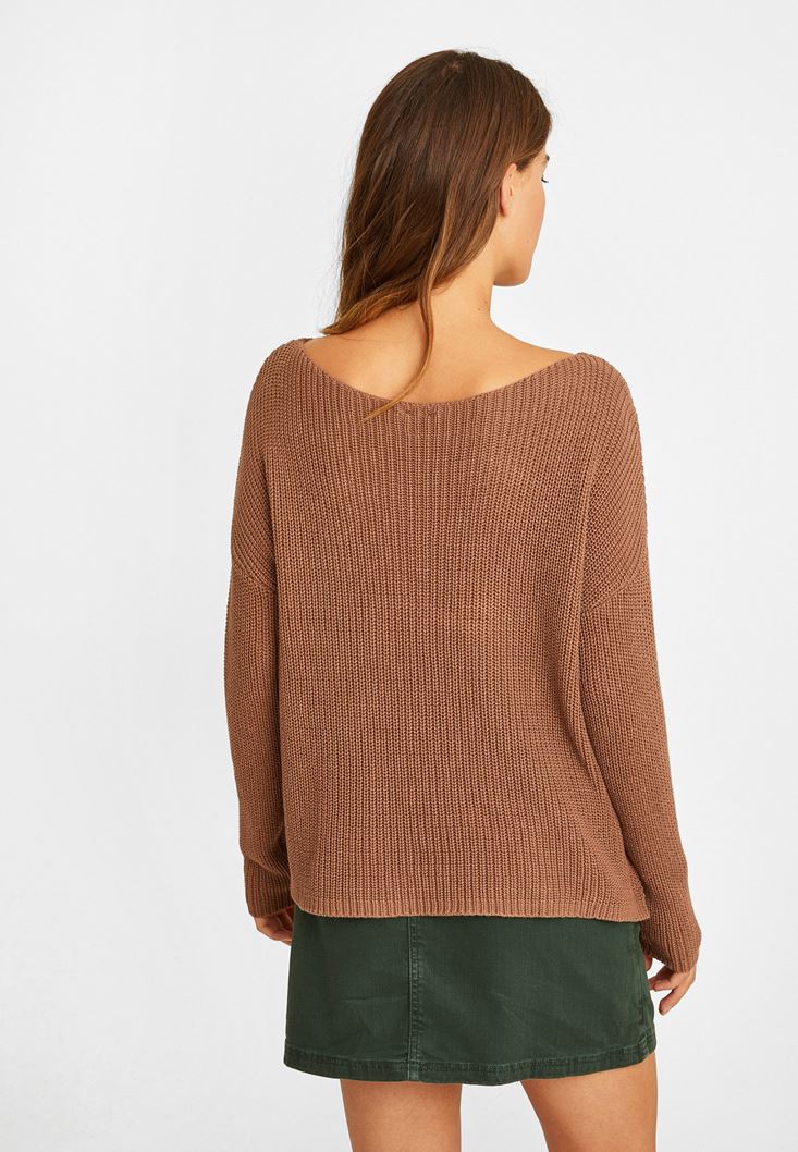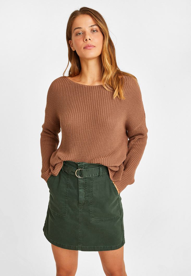 • Bayan Kahverengi Kayık Yaka Triko Kazak