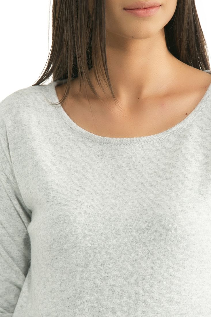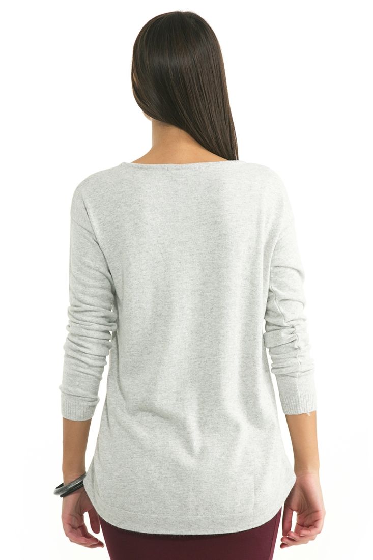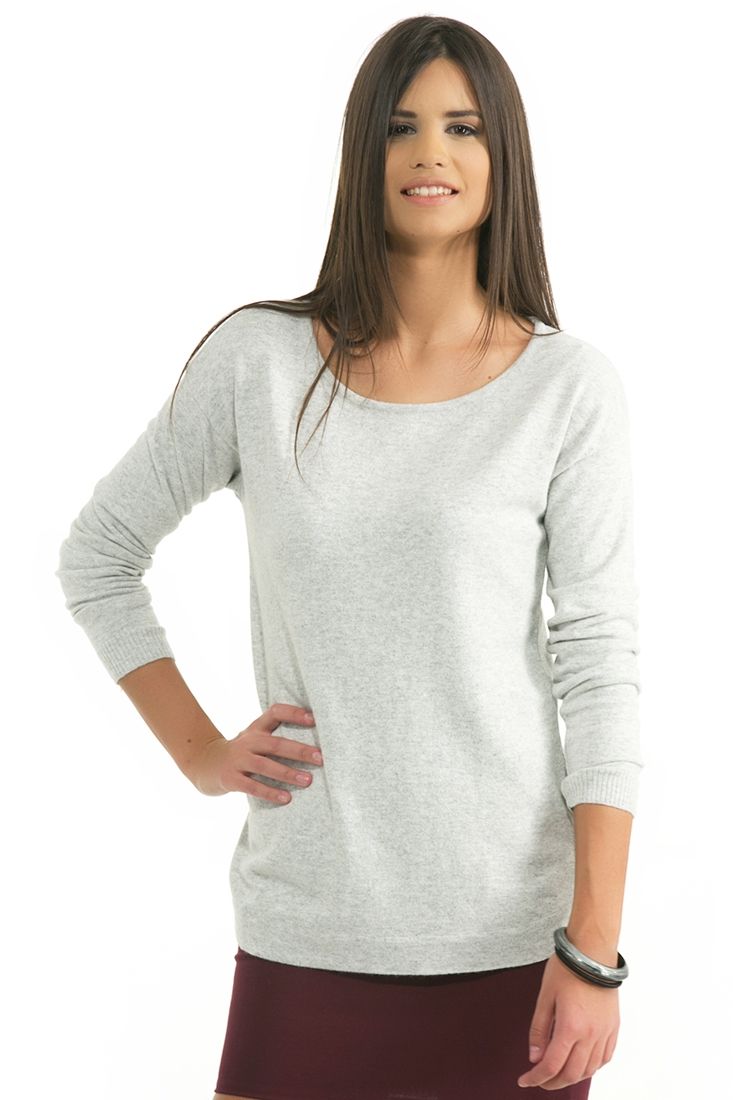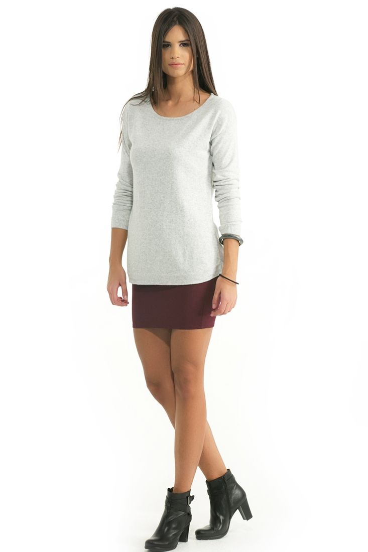 Açık bisiklet yaka, uzun kollu, önü kısa arkası uzun, kalın kazak.