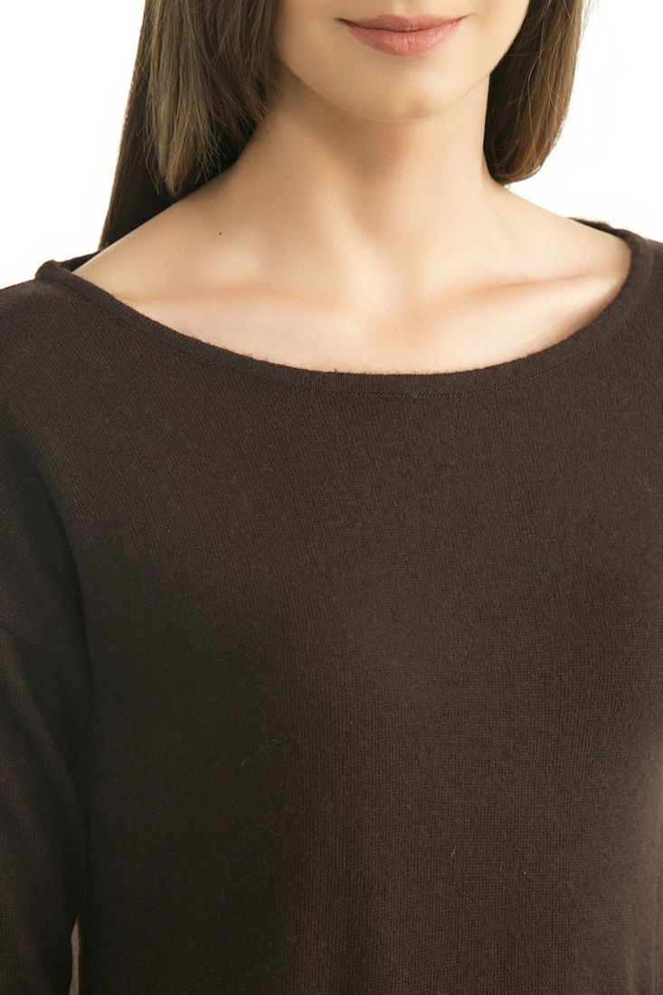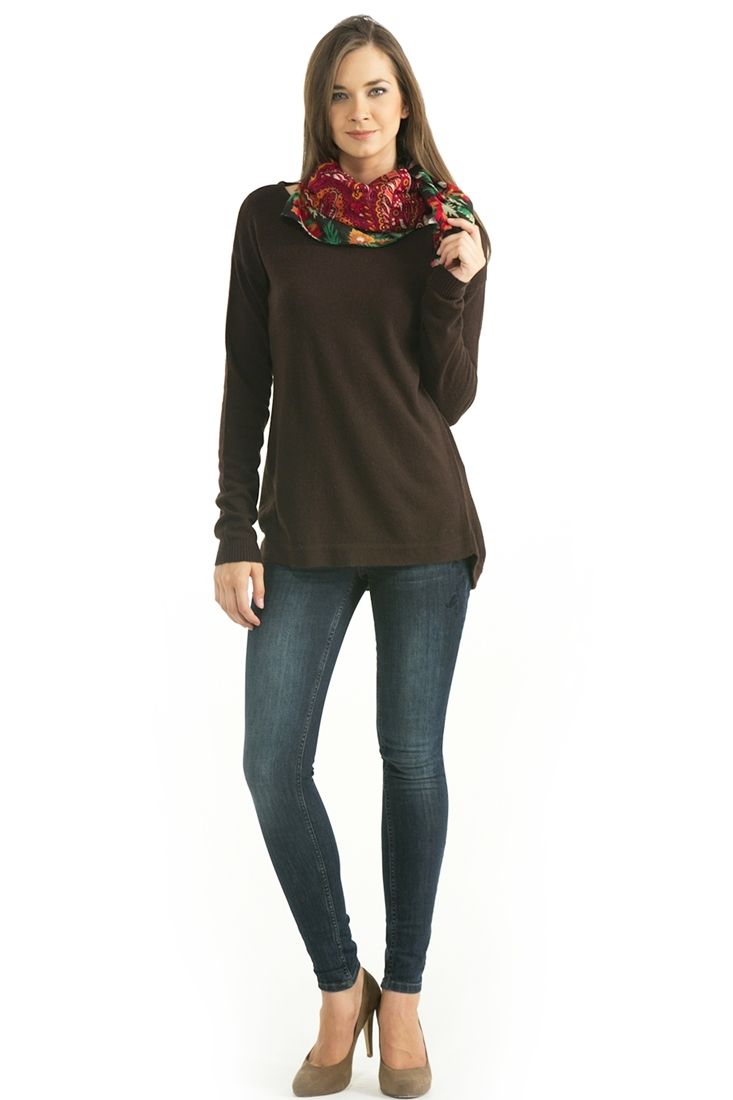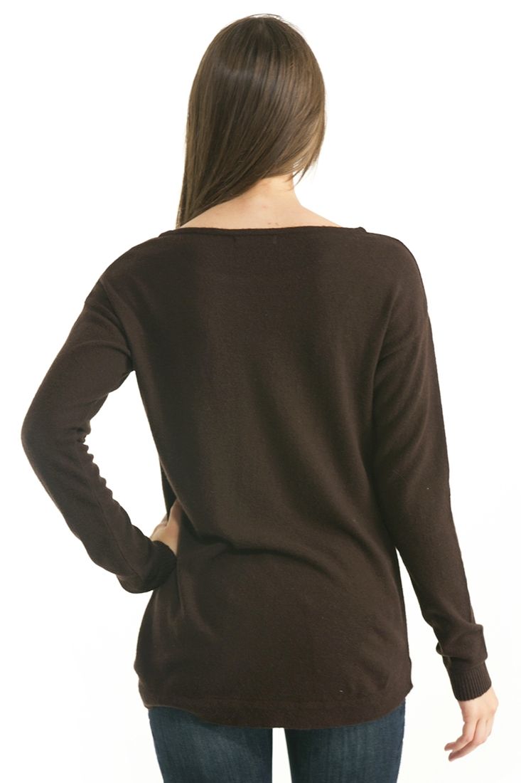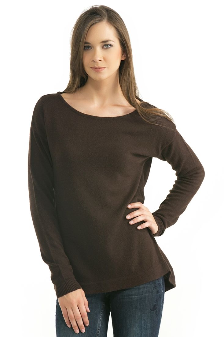 Açık bisiklet yaka, uzun kollu, önü kısa arkası uzun, kalın kazak.