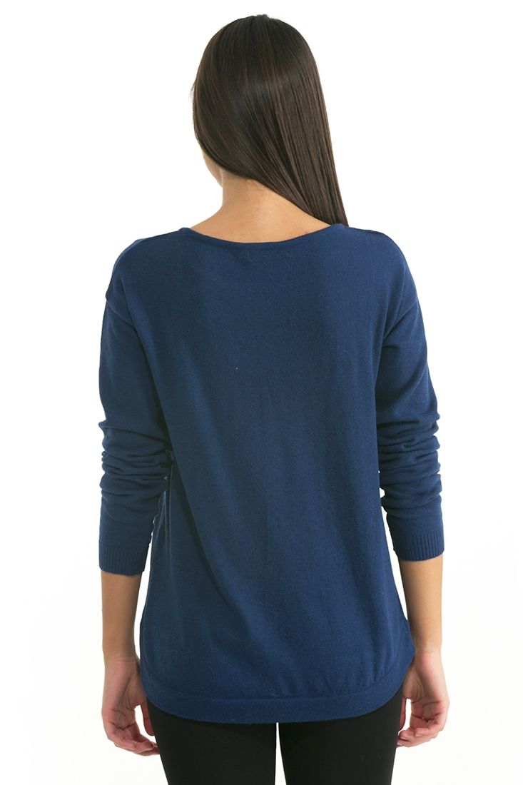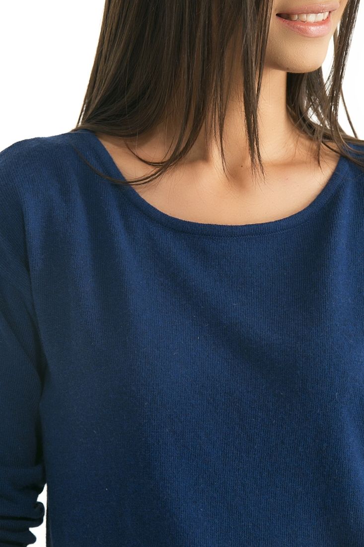 Açık bisiklet yaka, uzun kollu, önü kısa arkası uzun, kalın kazak.