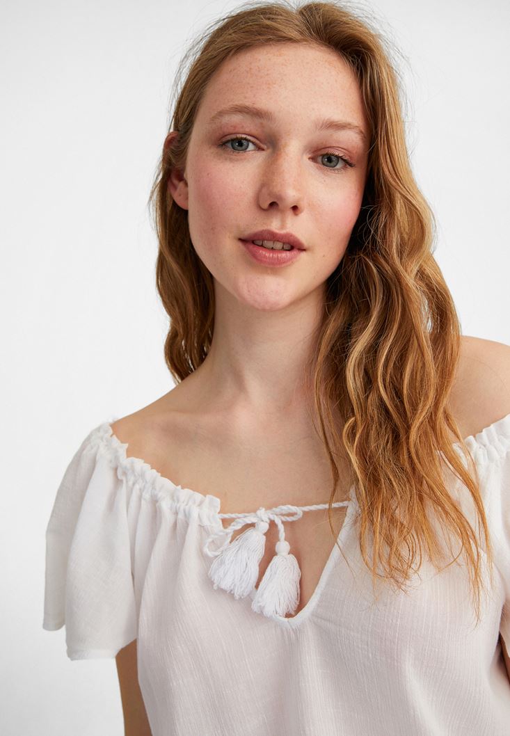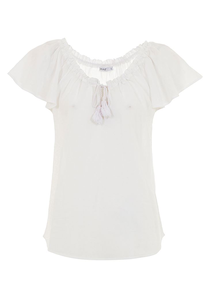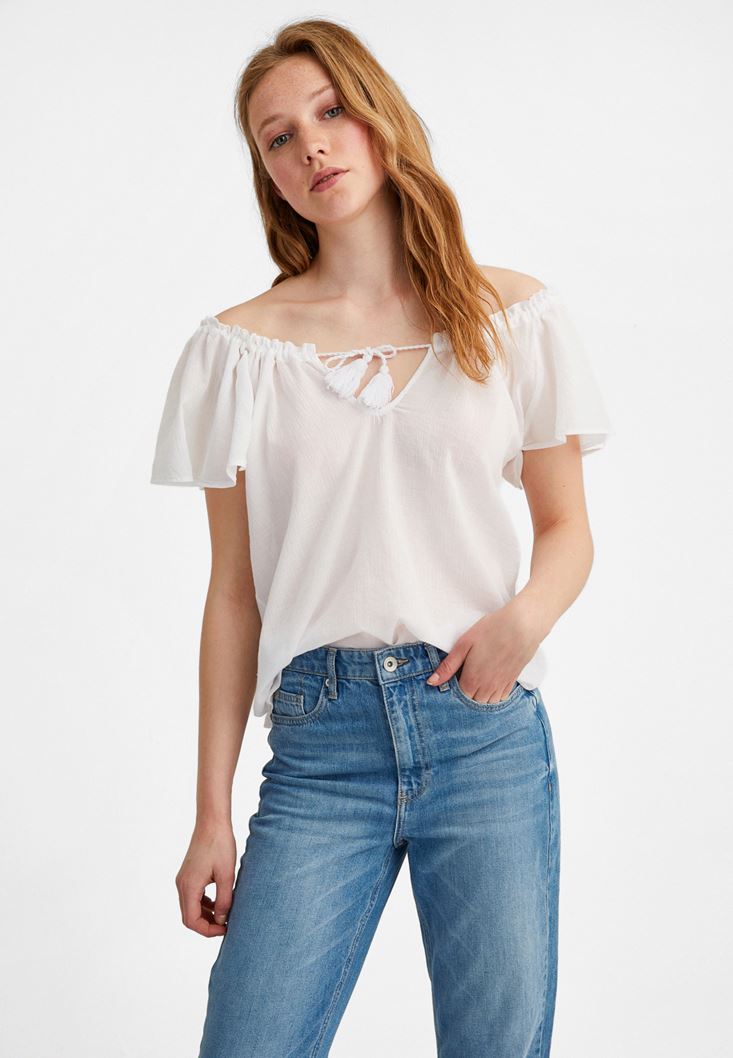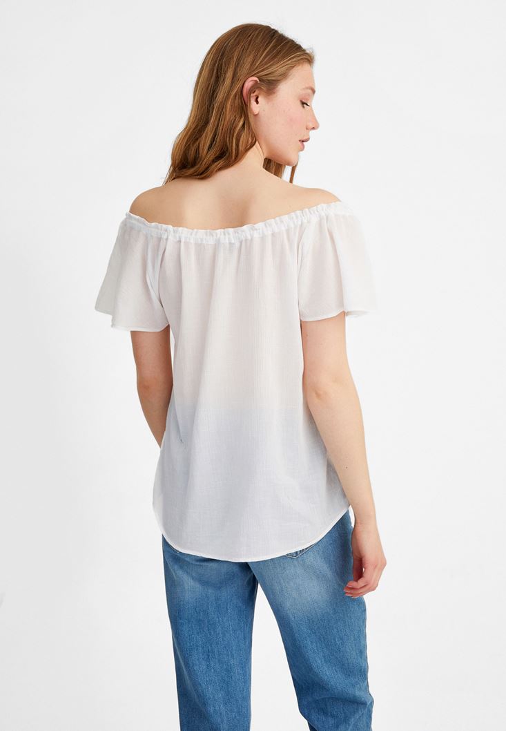 • Bayan Beyaz Kelebek Kol Pamuklu Bluz