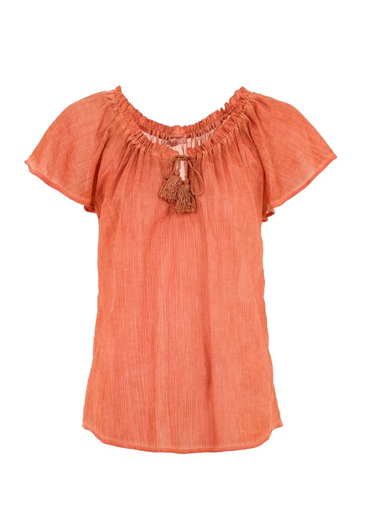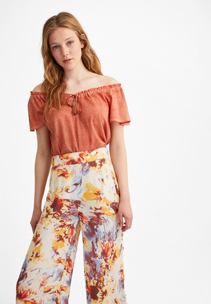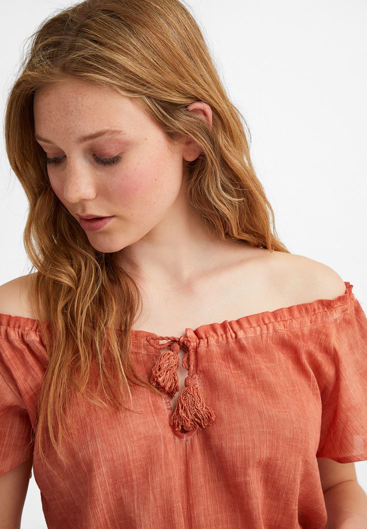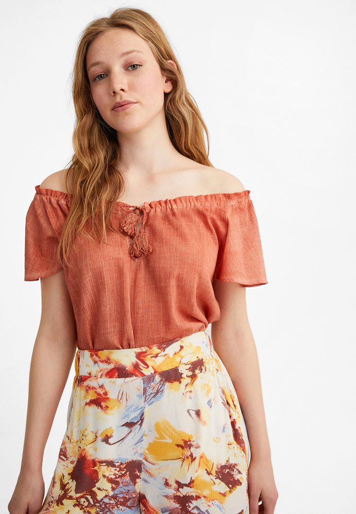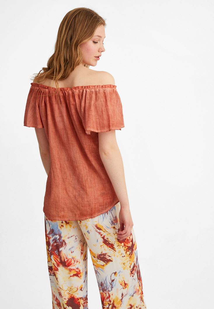 Turuncu Kelebek Kol Pamuklu Bluz