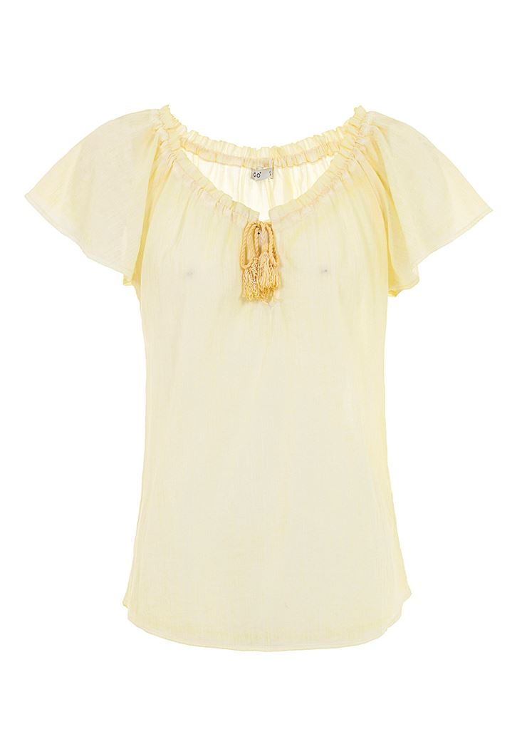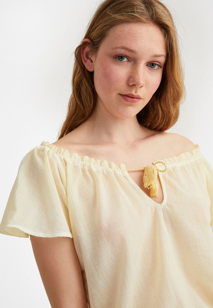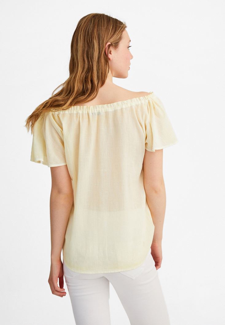 • Bayan Sarı Kelebek Kol Pamuklu Bluz