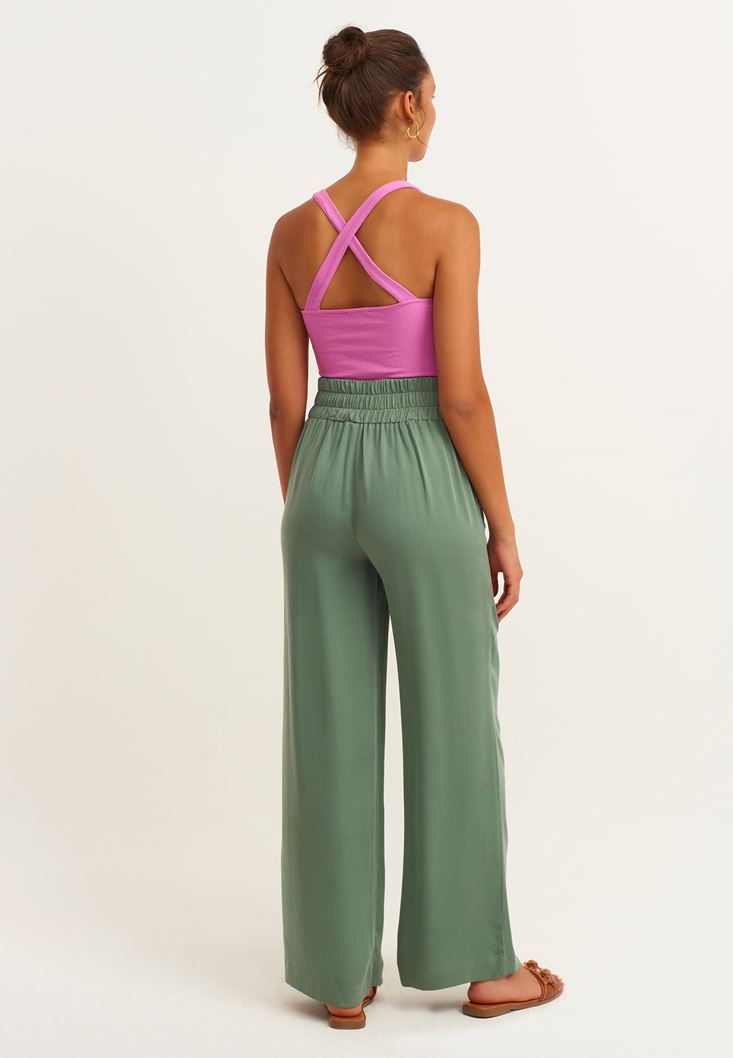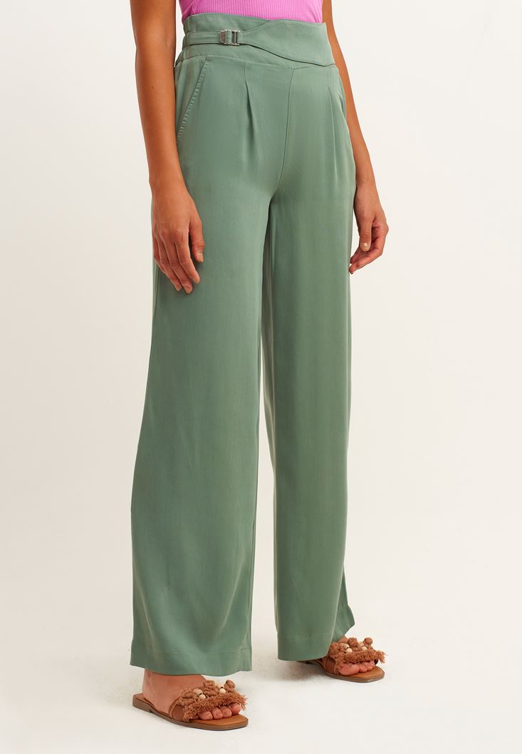 Yeşil Kemer Detaylı Bol Pantolon ( TENCEL™ )