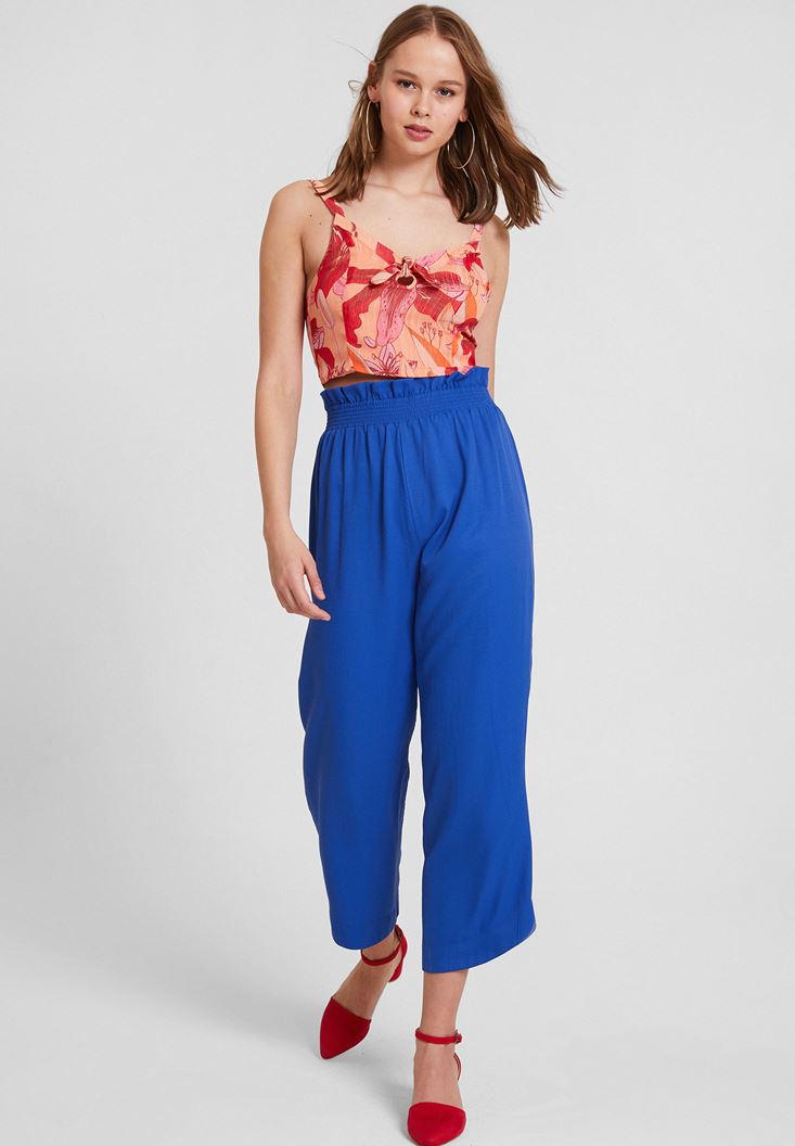 • Bayan Lacivert Kemer Detaylı Bol Pantolon