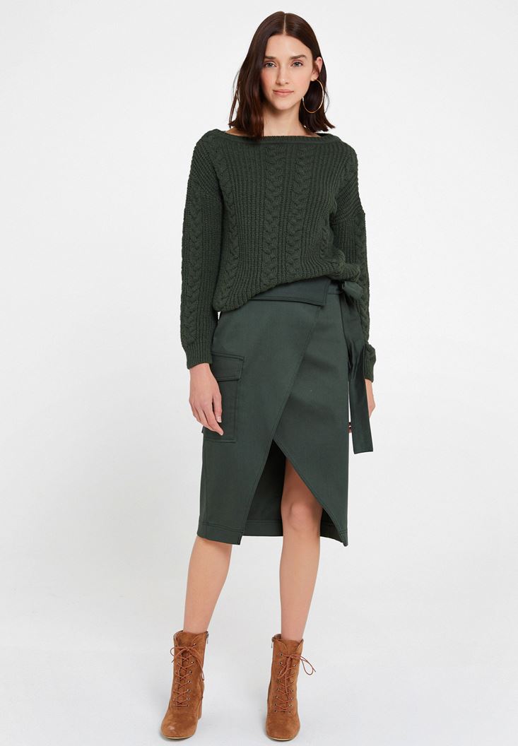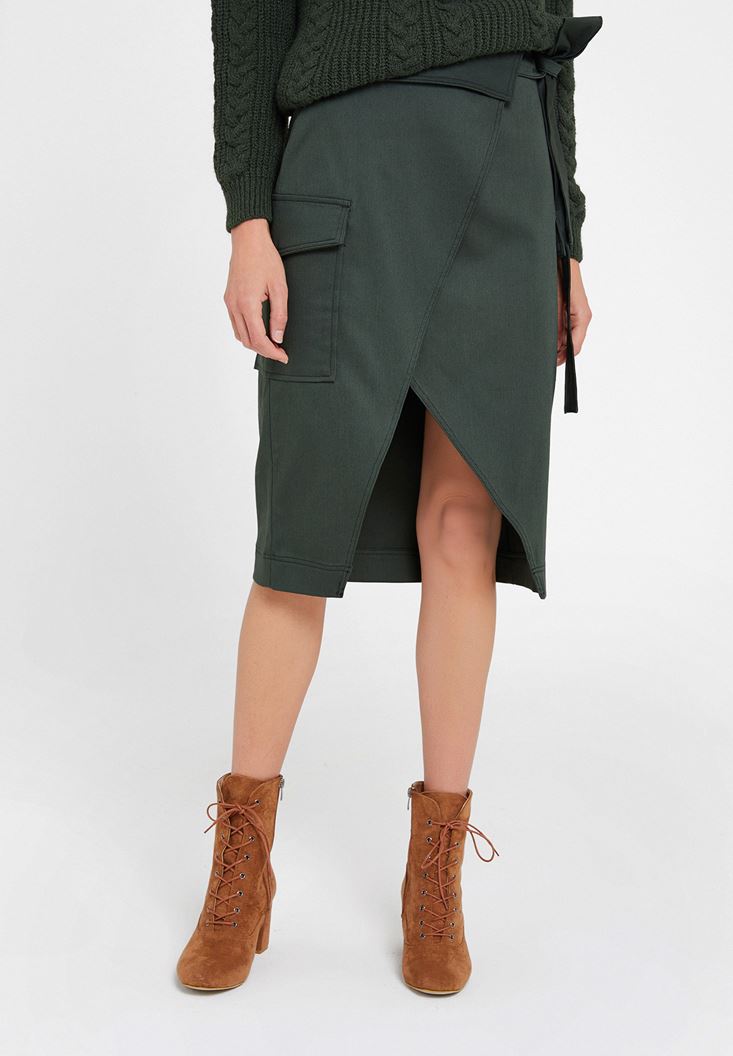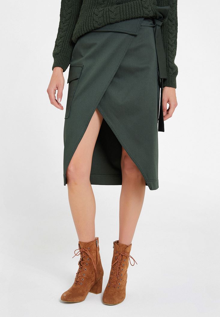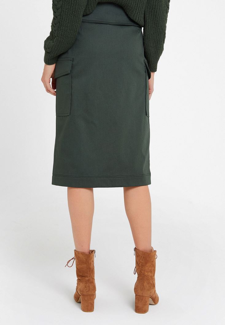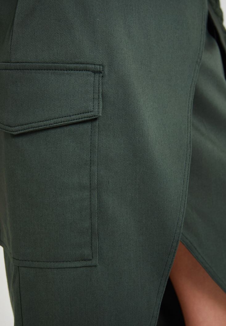Yeşil Kemer Detaylı Cepli Etek