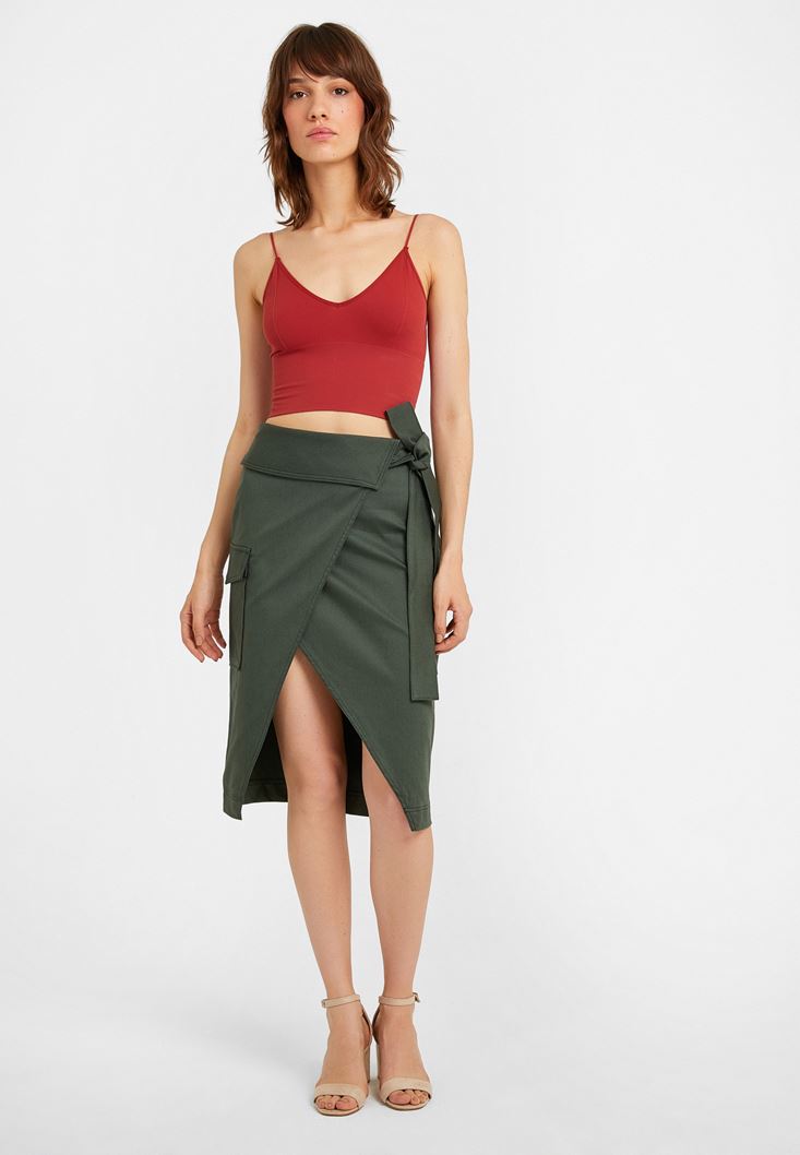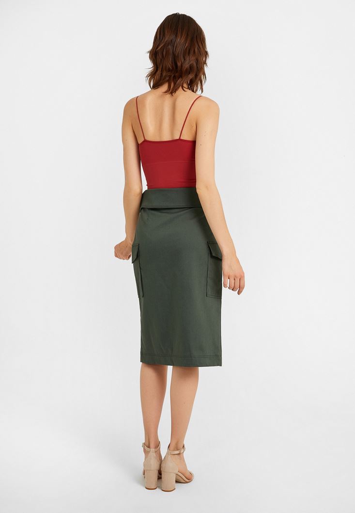 Yeşil Kemer Detaylı Cepli Etek