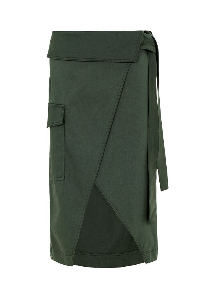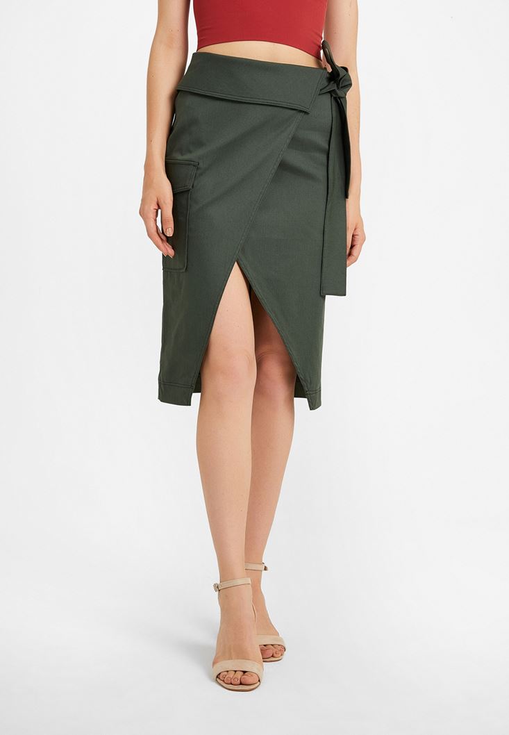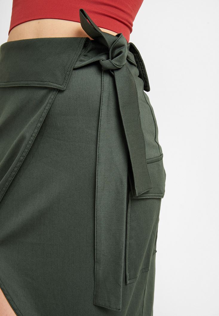 • Bayan Yeşil Kemer Detaylı Cepli Etek