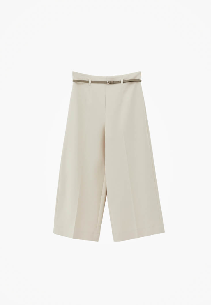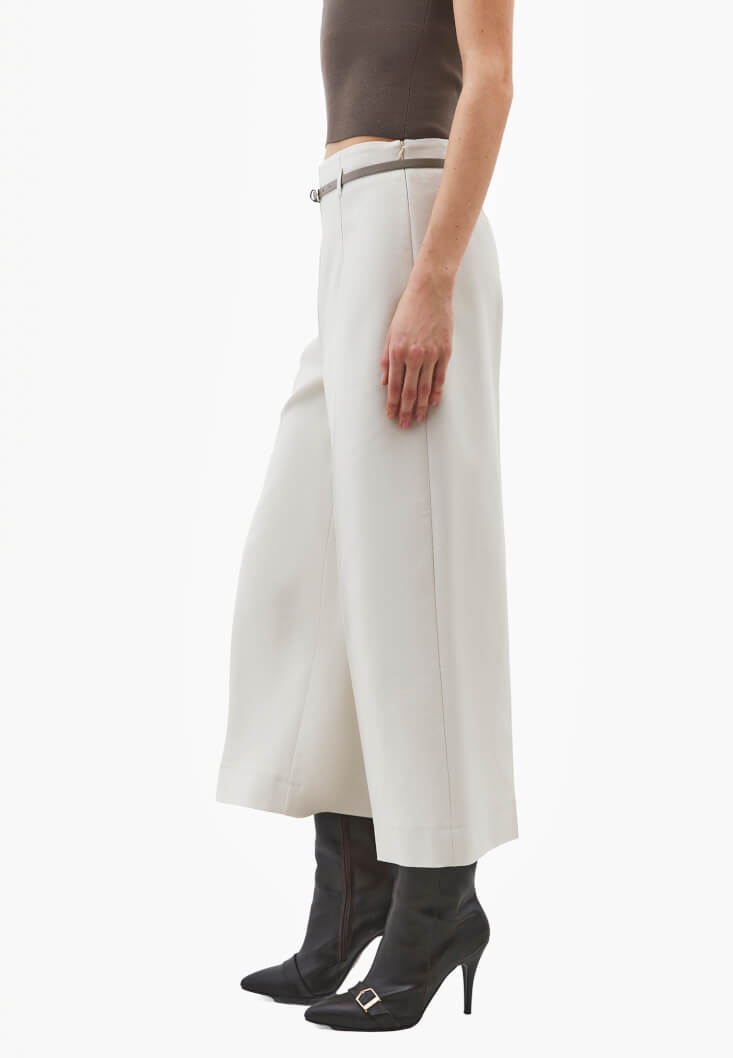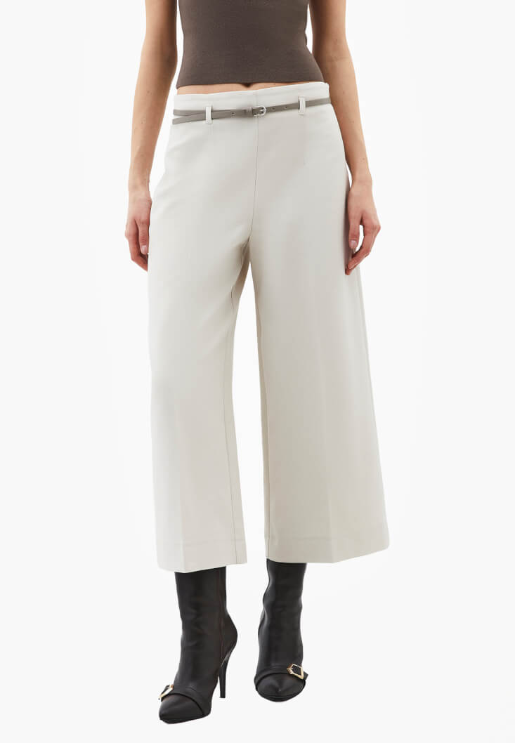 • Bayan Krem Kemer Detaylı Culotte Pantolon