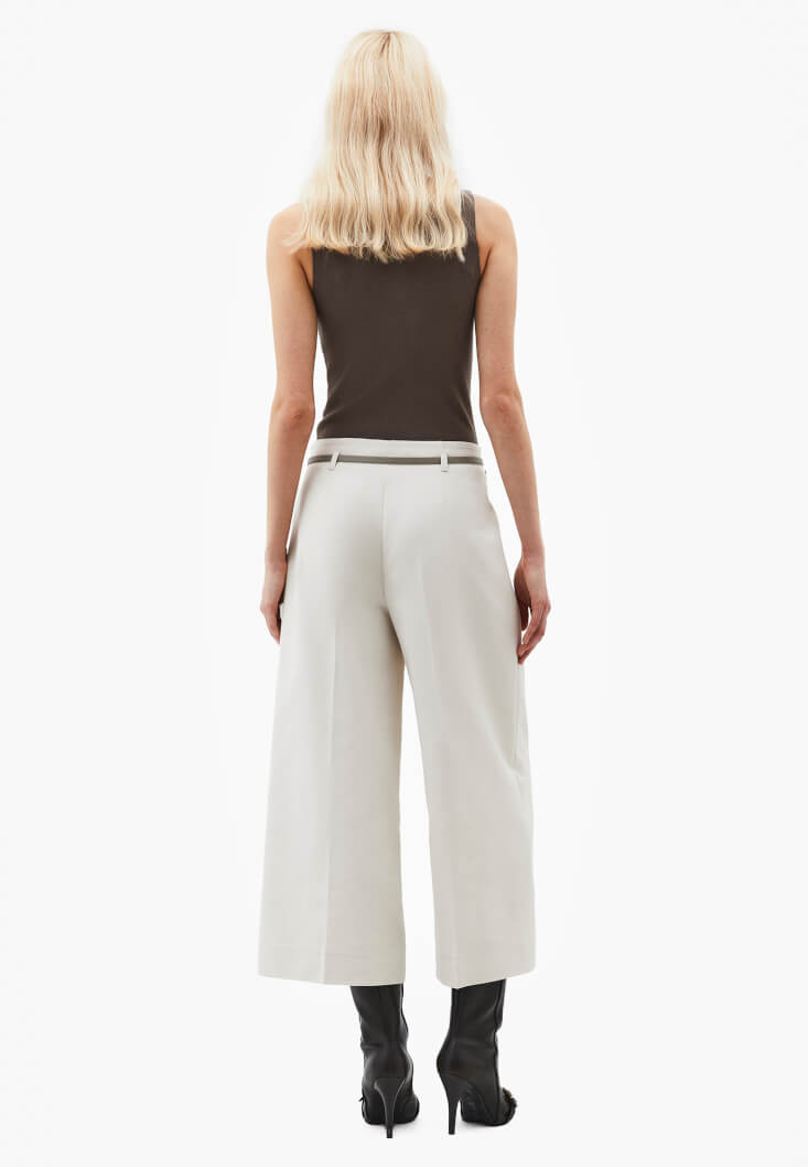 Krem Kemer Detaylı Culotte Pantolon