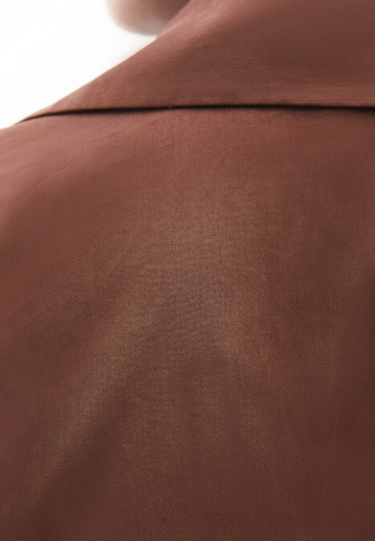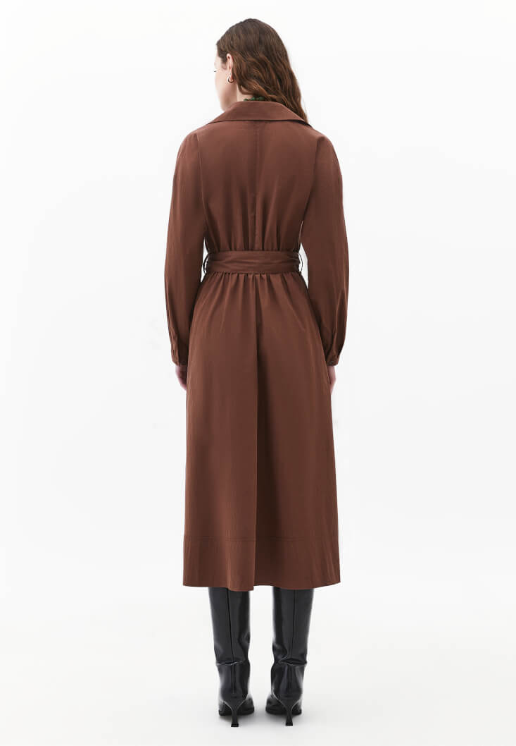 • Bayan Kahverengi Kemer Detaylı Gömlek Elbise