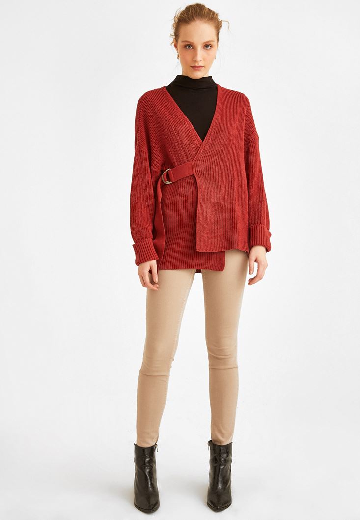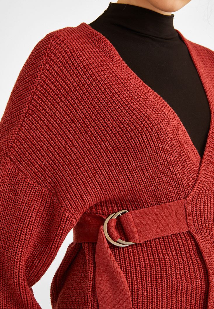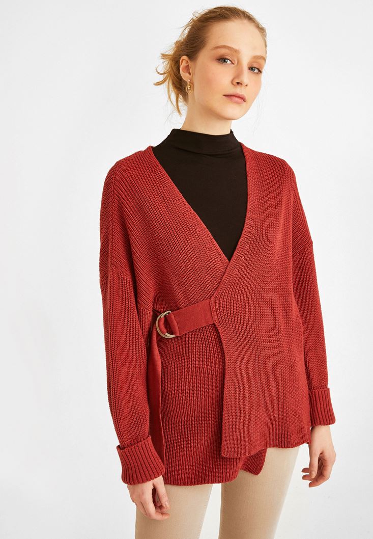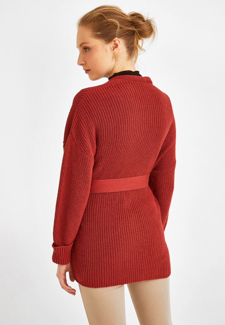 • Bayan Kahverengi Kemer Detaylı Hırka