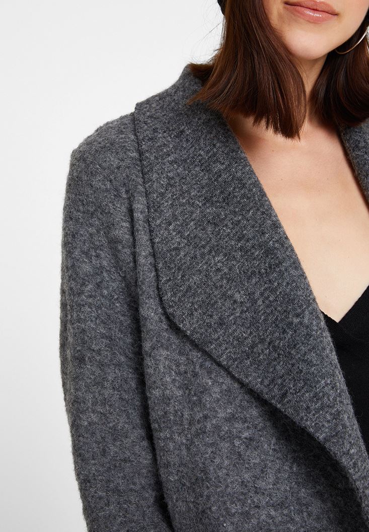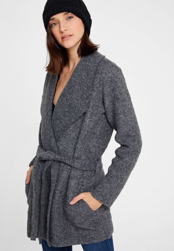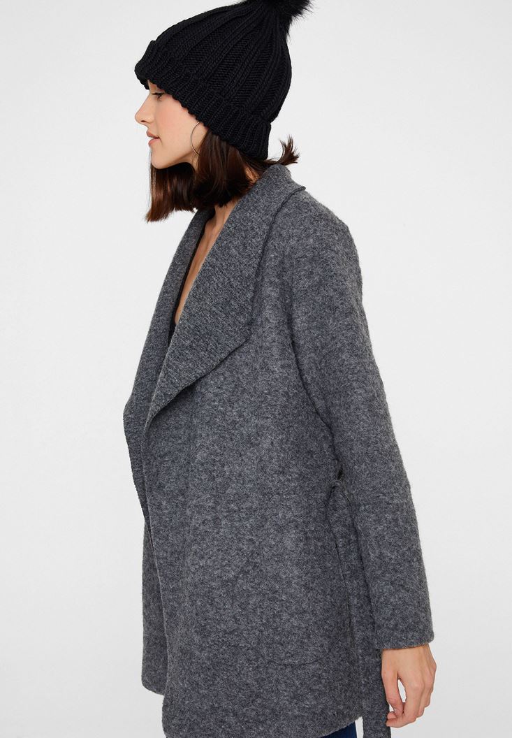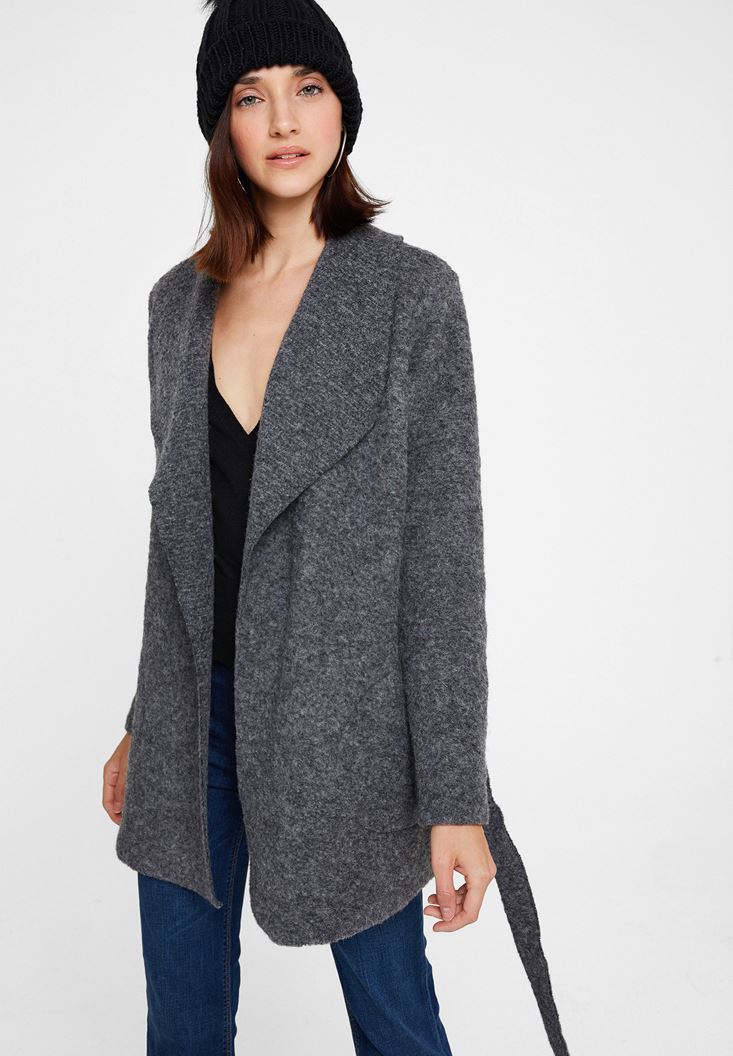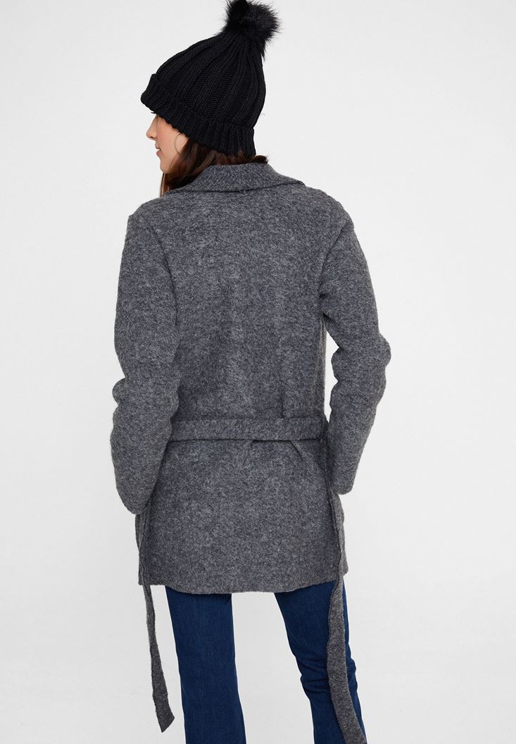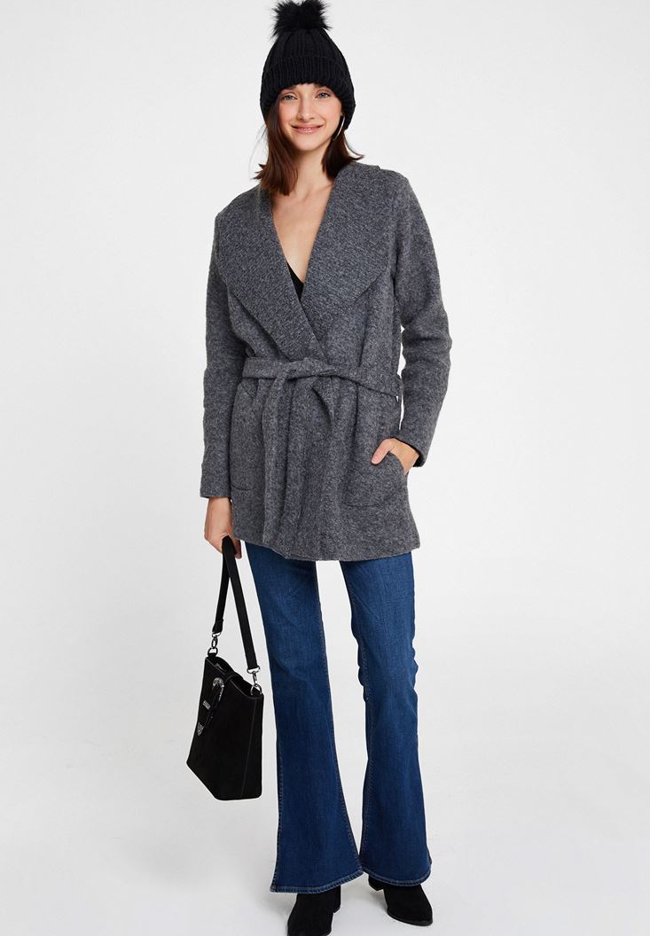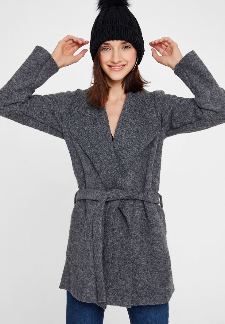 • Bayan Gri Kemer Detaylı İnce Yün Kaban