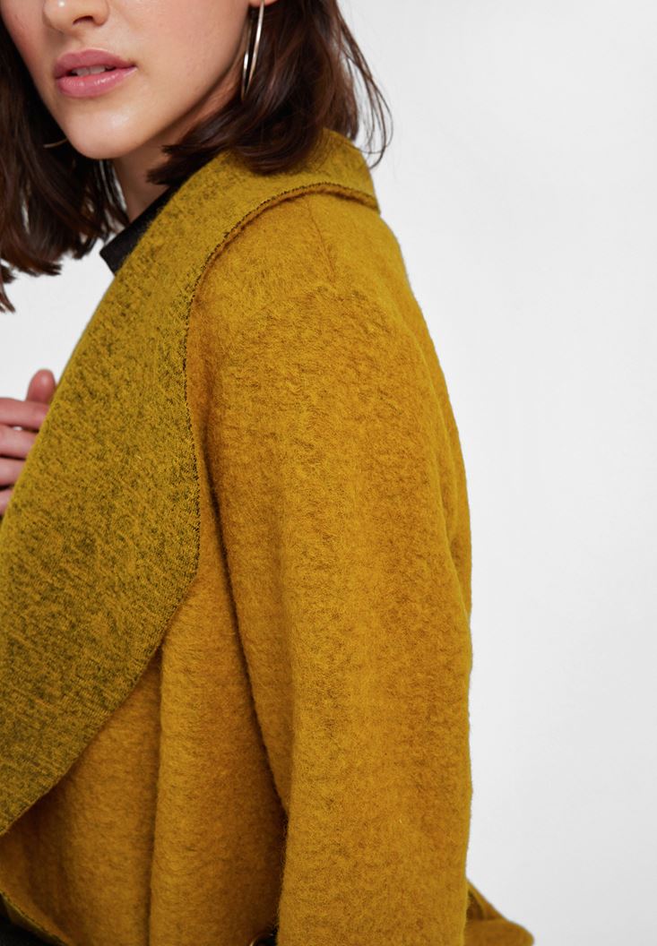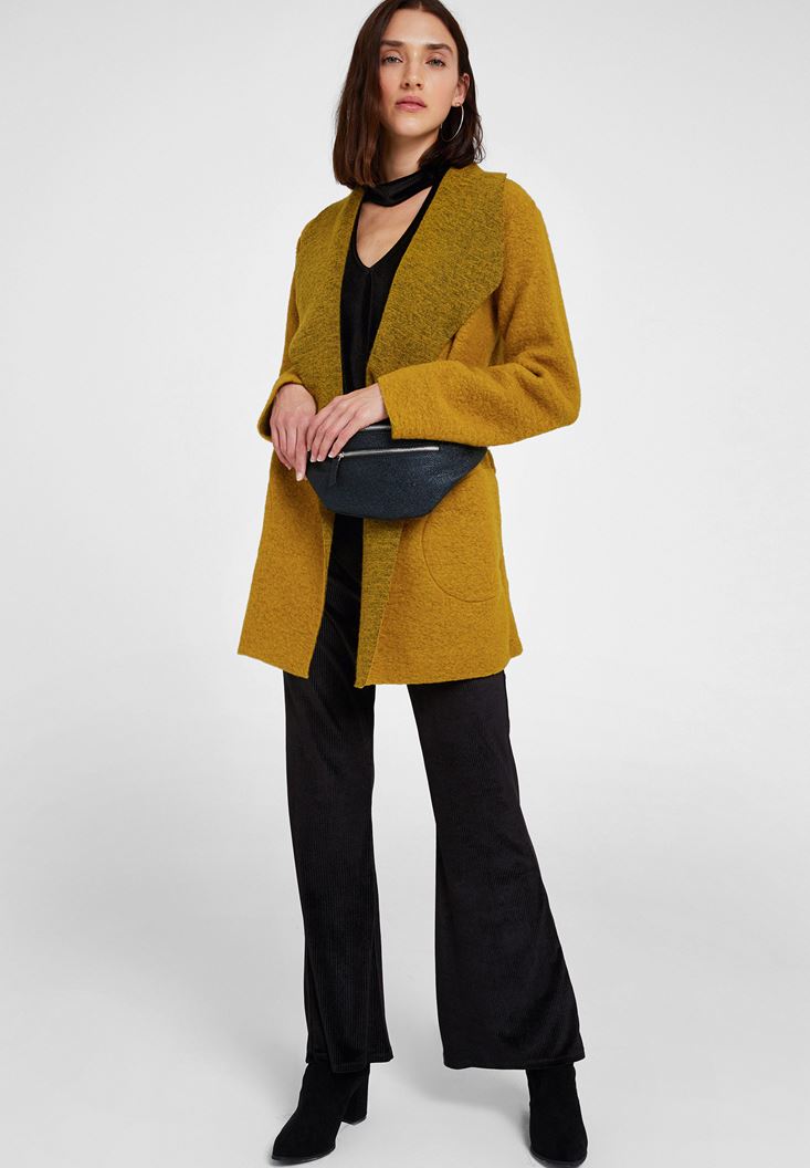 Kemer Detaylı İnce Yün Kaban modeli dokusu, zarafeti ve detayları ile kombinlerinizi tamamlarken kullanmaktan keyif alacağınız parçalardan birisi. Şal yaka kesime sahip olan kaban modelinde kullanılan dikiş detaylar tasarıma enerji kazandırıyor. Kemer Detaylı Yün Kaban modelinin cep detaylarında kullanılan dikişler tasarımın kendine has enerjisini yansıtıyor. Yün dokusu ile oldukça konforlu bir kullanım hissi sunan kaban modeli sahip olduğu kuşak sayesinde de konforu tamamlıyor. Yünün sıcak tutma özelliğini yansıtan kaban modeli sayesinde soğuk havalardan Detaylardan gelen zarif şıklığı başarılı bir şekilde yansıtan kaban modelleri arasında yer alan tasarım, OXXO’nun özgün ruhunu ve enerjisini en güzel şekilde yansıtan parçalardan birisi olarak dikkatinizi çekecek.