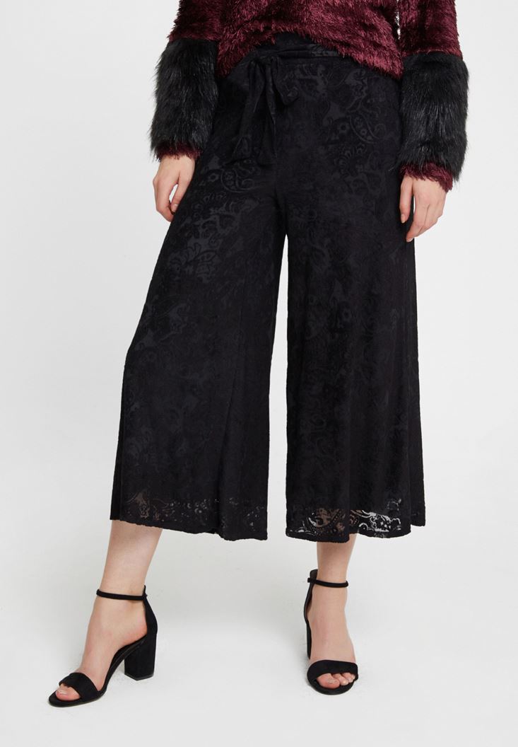 • Bayan Siyah Kemer Detaylı Kadife Bol Pantolon