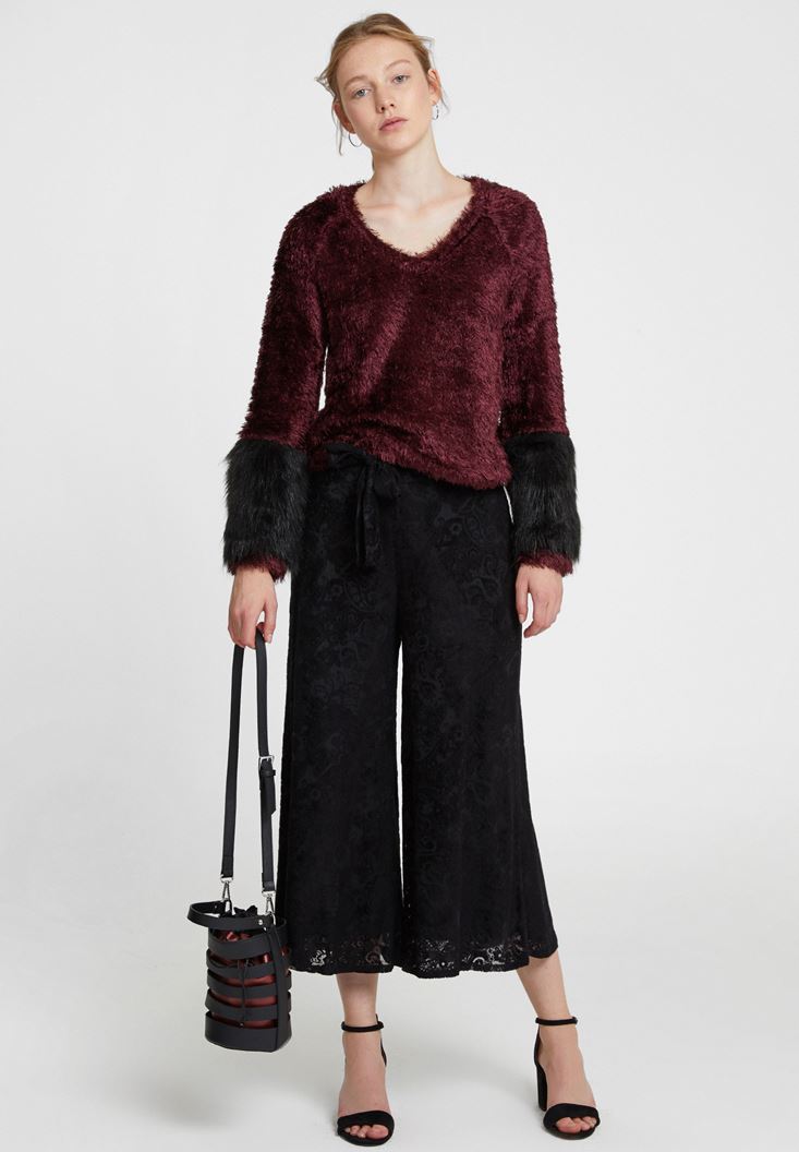 Kemer detaylı Kadife Bol Pantolon sahip olduğu dökümlü kesim, ışıltılı doku ve zarif desenler ile kullanmaktan keyif aldığınız pantolon modelleri arasında yer alacak. Yumuşak dokusu ile kullanım konforunu başarılı bir şekilde ön plana çıkaran pantolon modeli aynı zamanda dokusunda bulunan viskoz lifinin dikkat çekici özellikleri sayesinde de farklı bir deneyim sunuyor. Viskon lifinin nefes alan yapısı ve nem emiciliği sayesinde her zaman hareket özgürlüğü ile rahatlığı bir arada sunan pantolon modelinin kemer detayı da bu özellikleri destekliyor. Floral ve etnik desenleri hoş bir şekilde harmanlayan OXXO’nun zarafeti en güzel şekilde yansıttığı tasarımlarından birisi olan pantolon modeli ile kendinize dikkat çekici kombinler yapmanın tadını çıkaracaksınız.