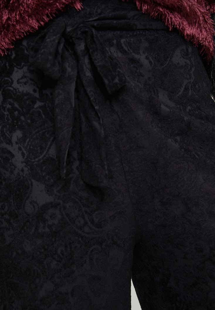 Siyah Kemer Detaylı Kadife Bol Pantolon