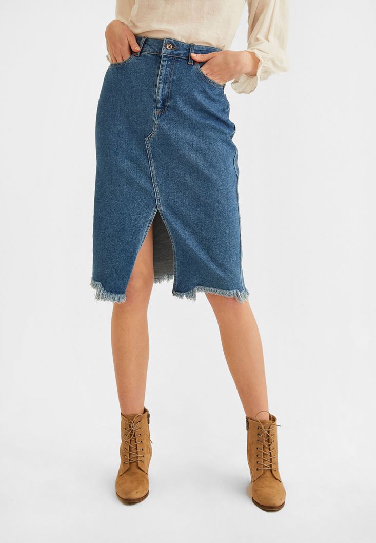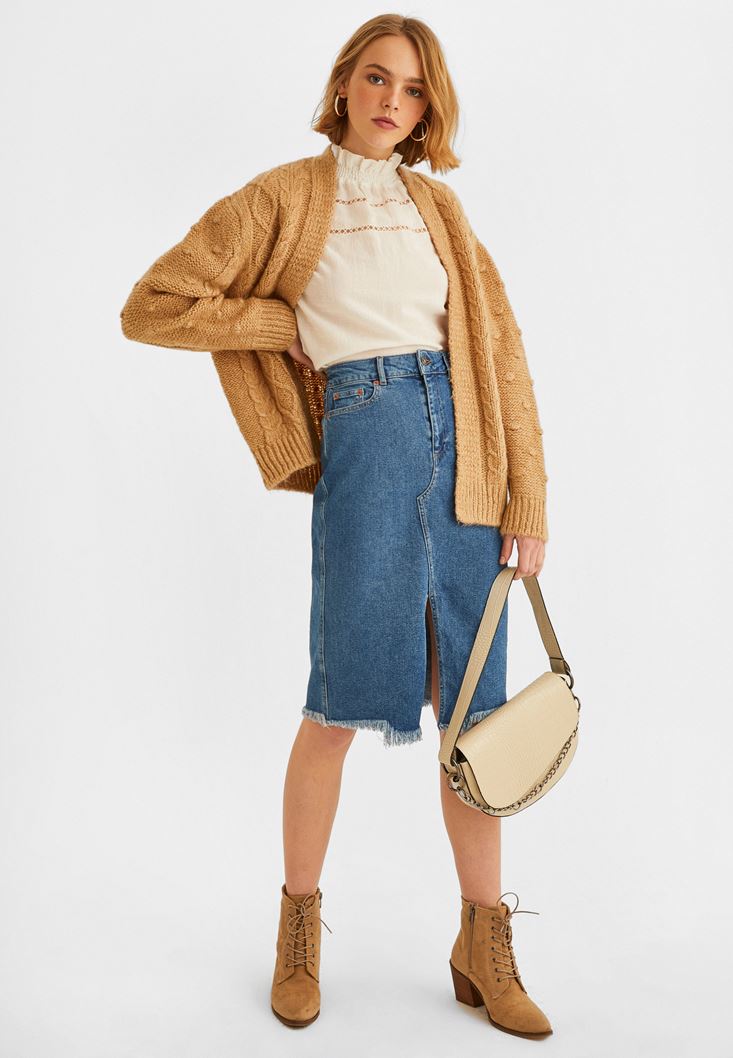 Kemer Detaylı Kot Etek modeli, pamuk içerikli dokusu ve bedeni hafifçe saran kalıbı ile yeni sezonda sizlere sunuluyor. kadın etek modeli, belinde bulunan örgülü bağcık detayı ve ön kısmındaki yırtmacı ile oldukça dikkat çekiyor. Yırtmaçlı etek modeli, kesik ayrıntılı hoş görüntüsü ile Oxxo'da karşınıza çıkıyor. kadın etek modeli ile hoşunuza gidebilecek benzersiz kombinler yapabilirsiniz. Yırtmaçlı etek modeli ile crop bluzlar veya kazaklar tercih ederek zarif görünümlere ulaşabilirsiniz. kadın etek modeliyle oluşturacağınız stilinizi topuklu ayakkabılarla ya da kısa botlarla tamamlayabilirsiniz. Oxxo'nun benzersiz dokularla ve hoş kalıplarla sizlere sunduğu kadın etek modelleri ile tarzınıza çekicilik katabileceğiniz kombinler yapabilirsiniz.
