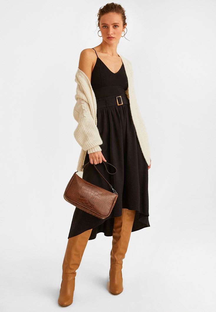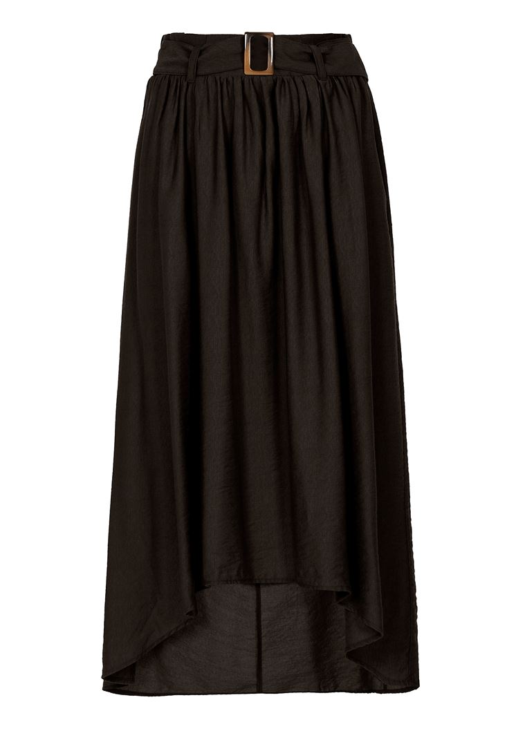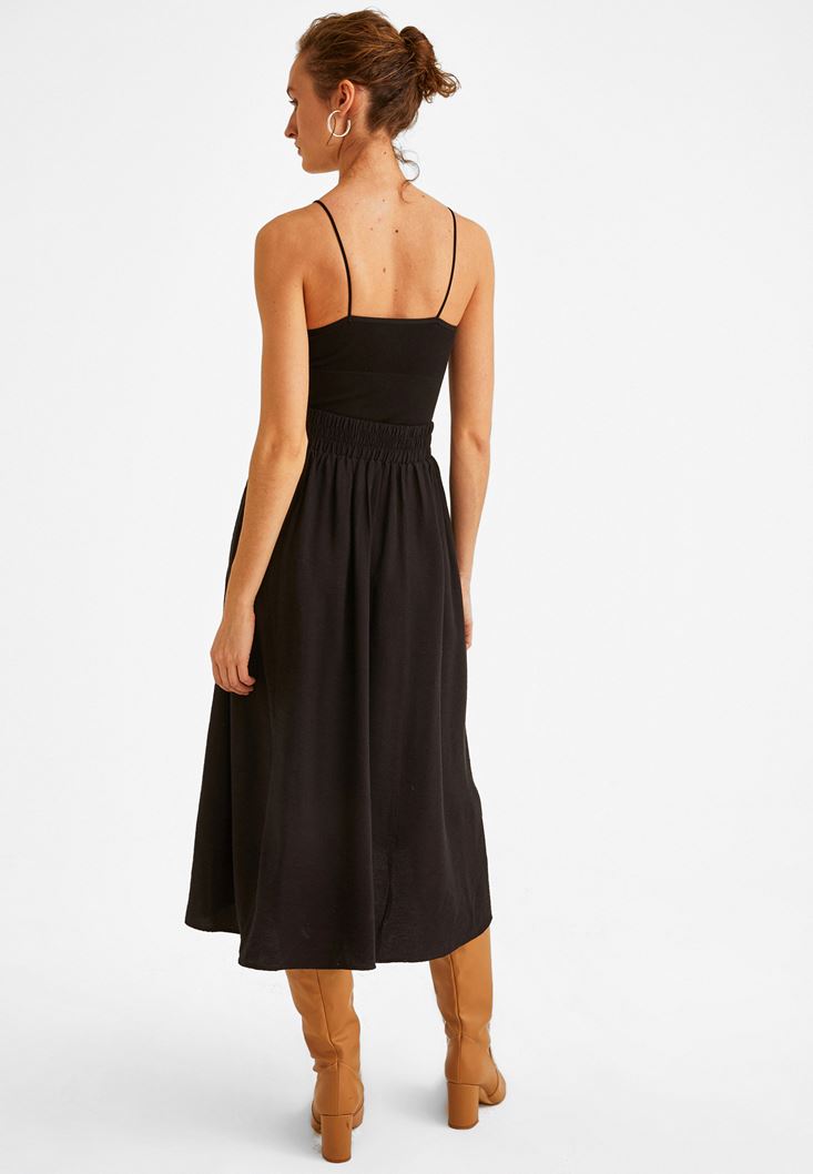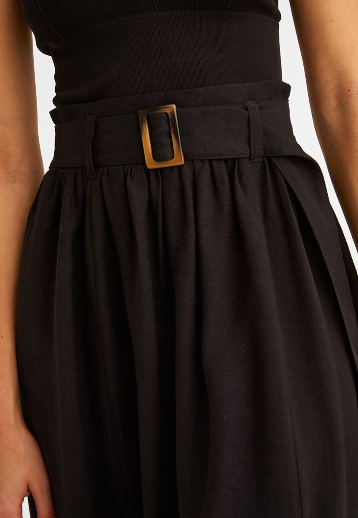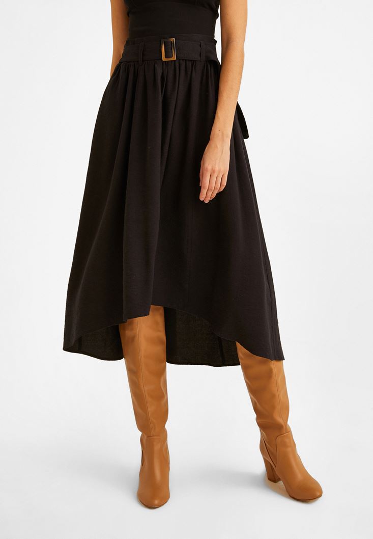• Bayan Siyah Kemer Detaylı Midi Boy Etek