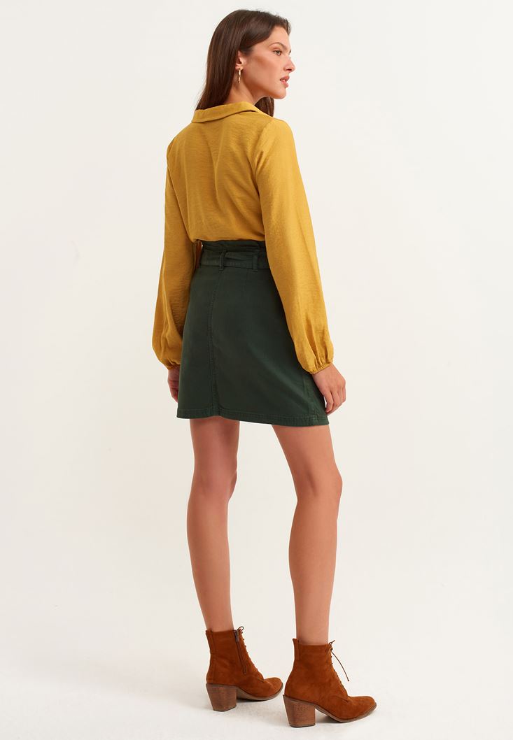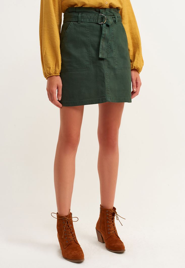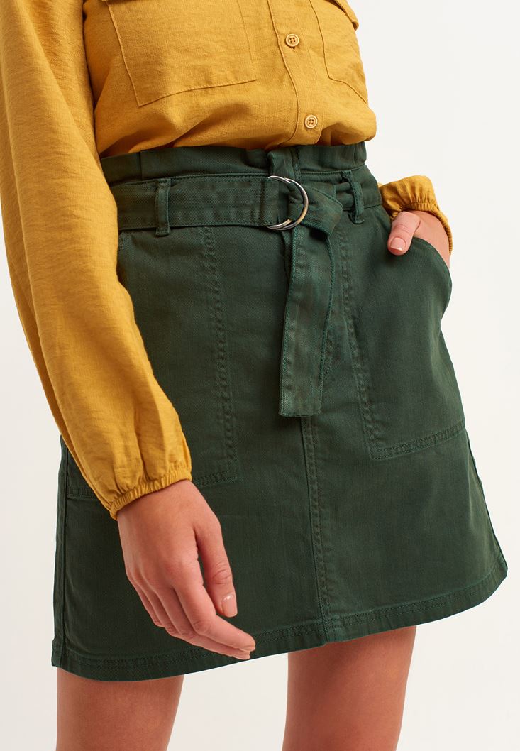 Yeşil Kemer Detaylı Mini Etek