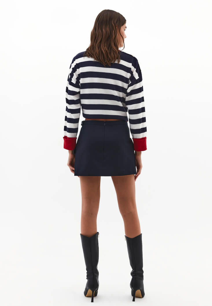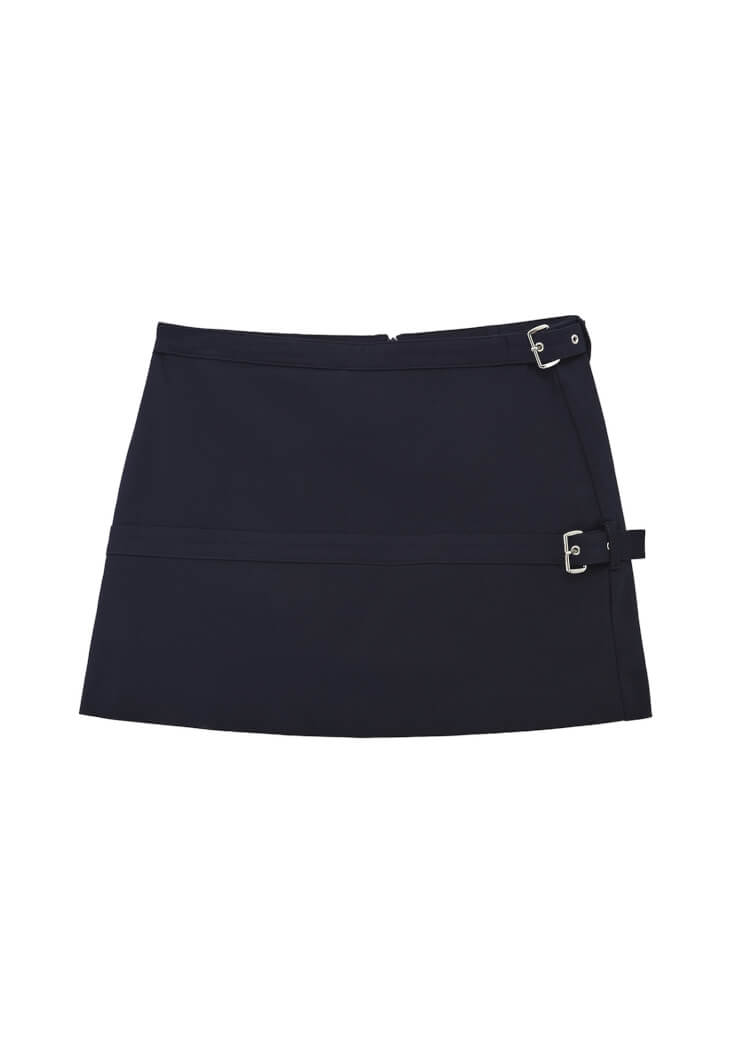 • Bayan Lacivert Kemer Detaylı Mini Şort Etek