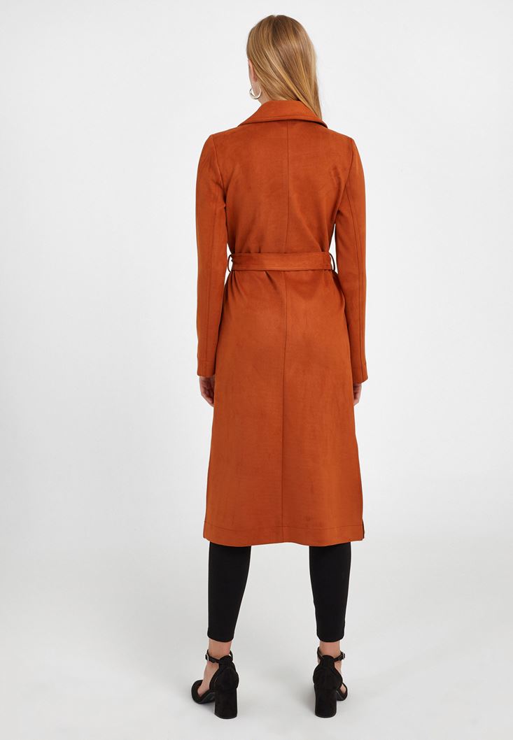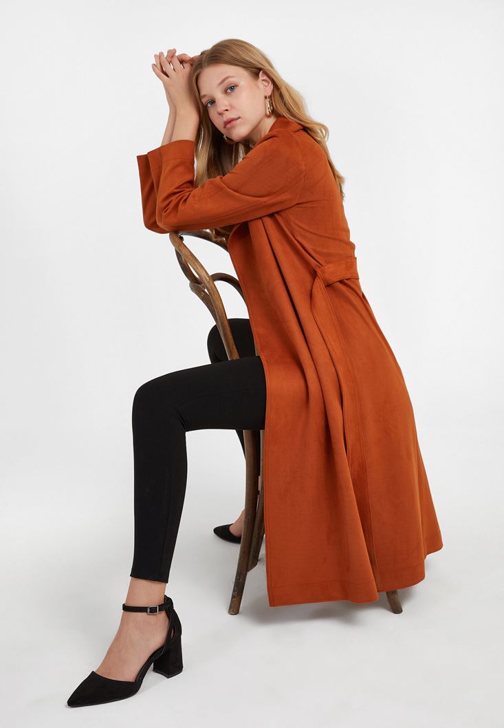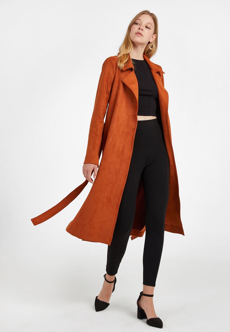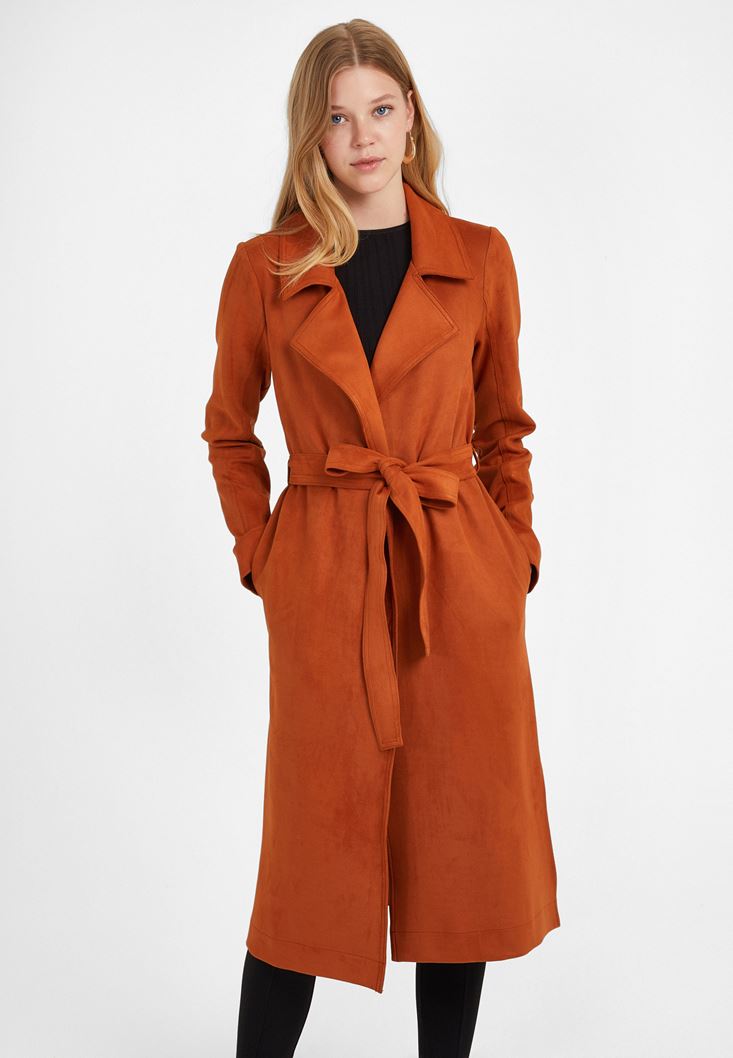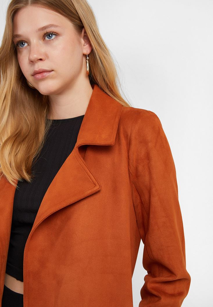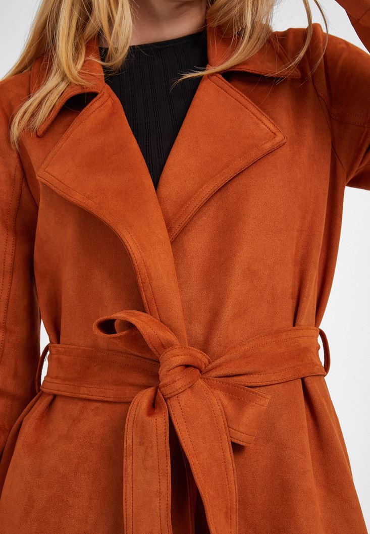 Turuncu Kemer Detaylı Süet Ceket
