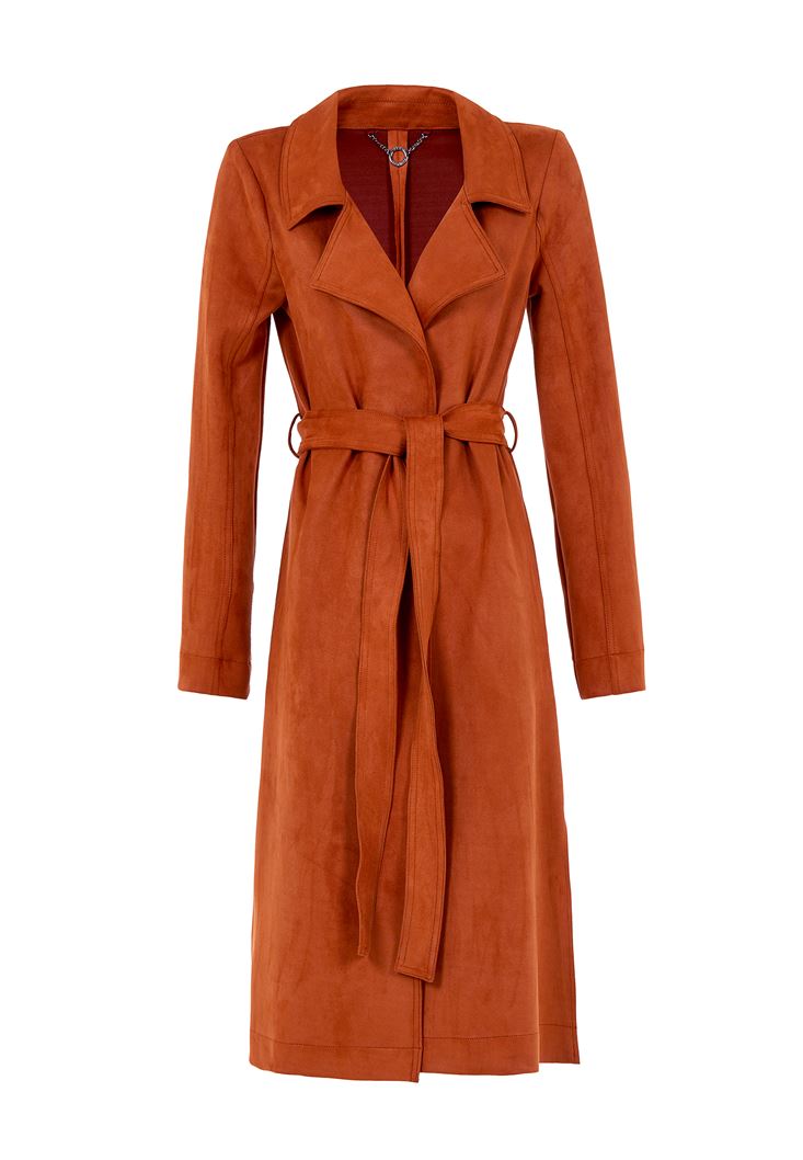 • Bayan Turuncu Kemer Detaylı Süet Ceket