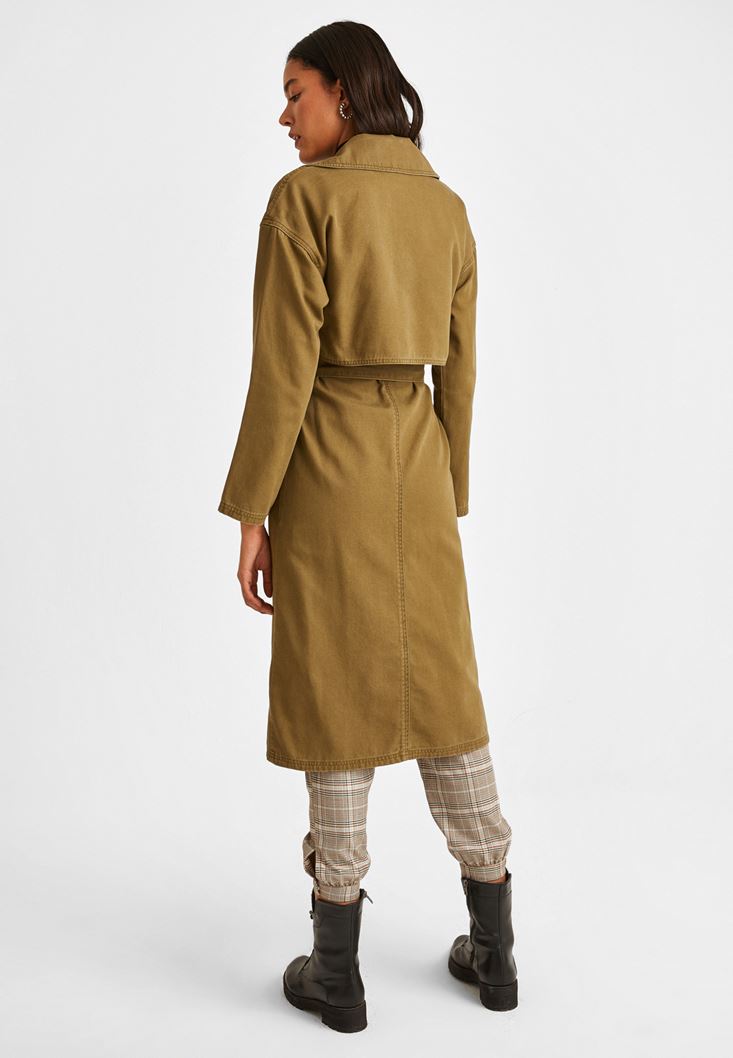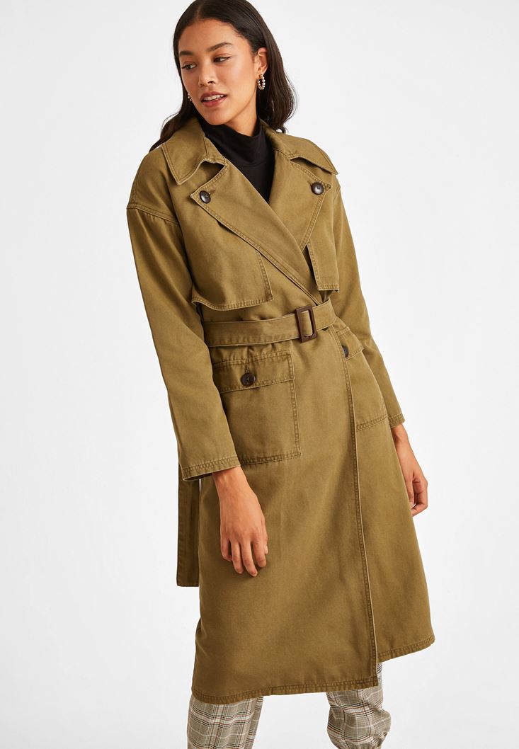 • Bayan Yeşil Kemer Detaylı Trençkot