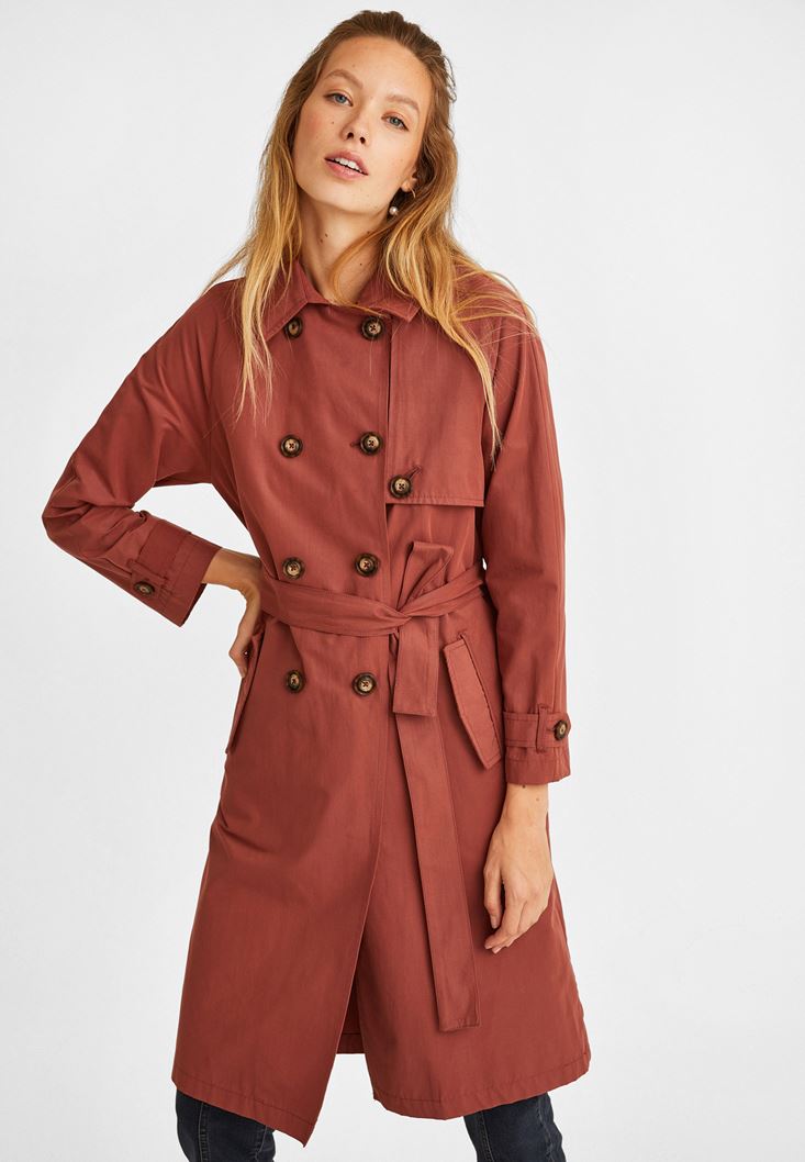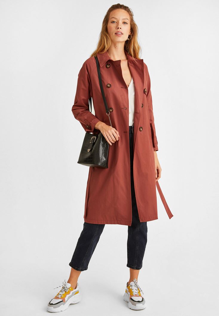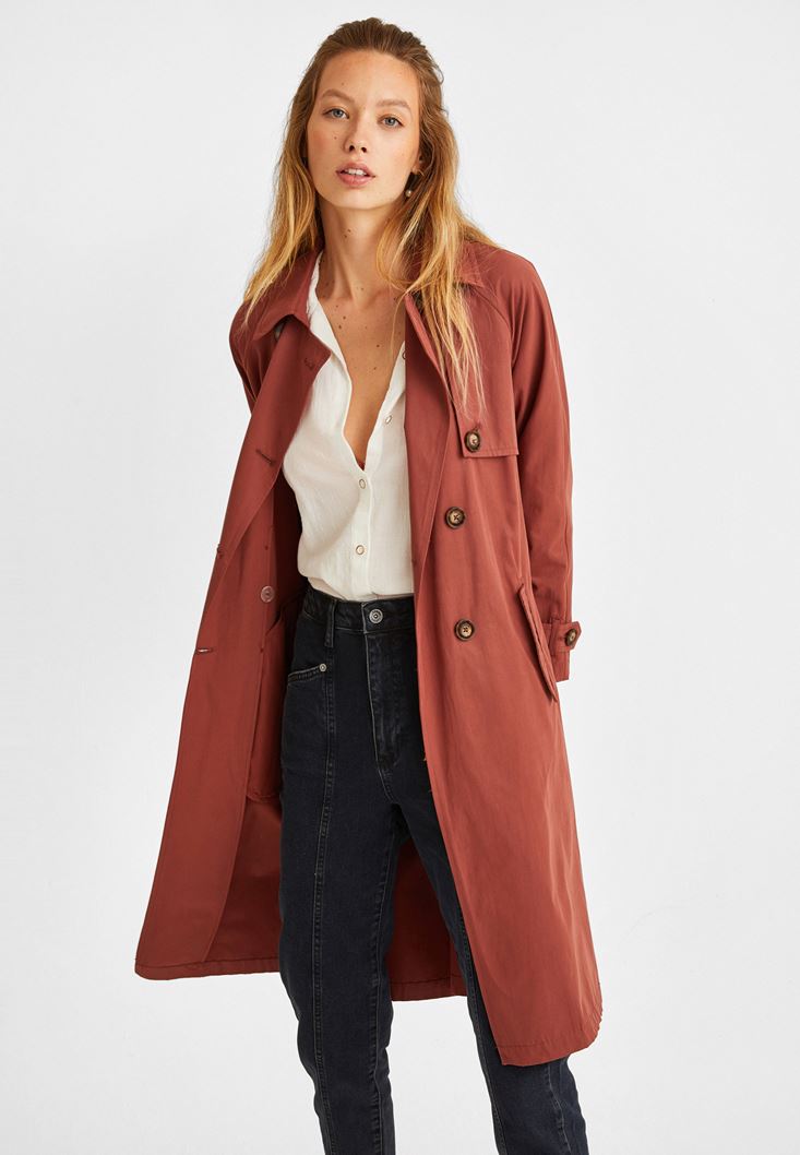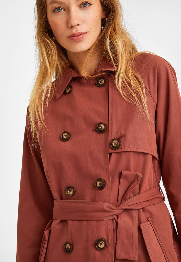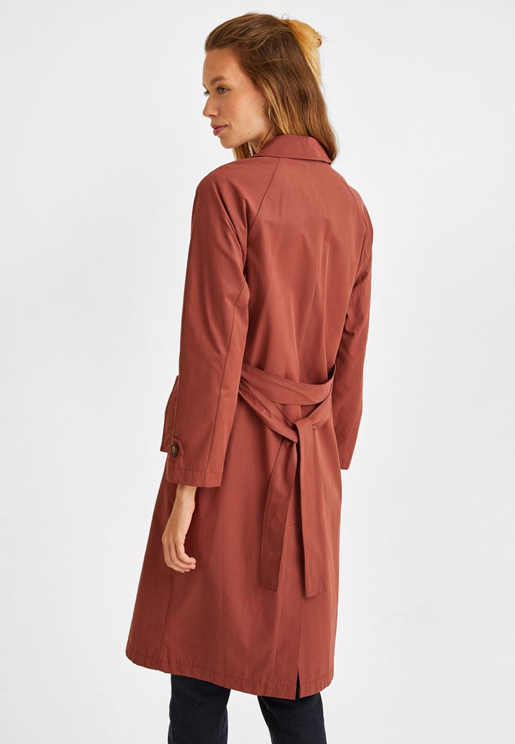 • Bayan Kiremit Kemer Detaylı Trençkot