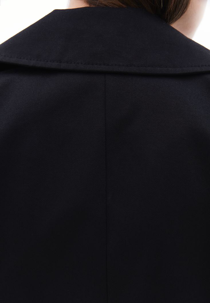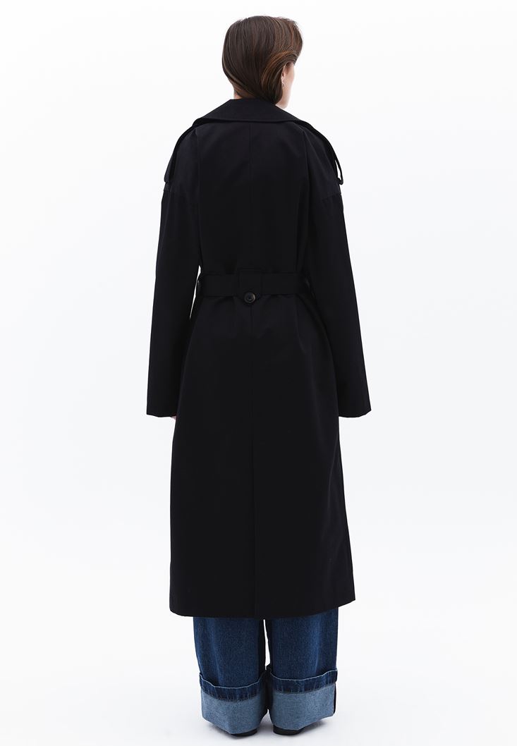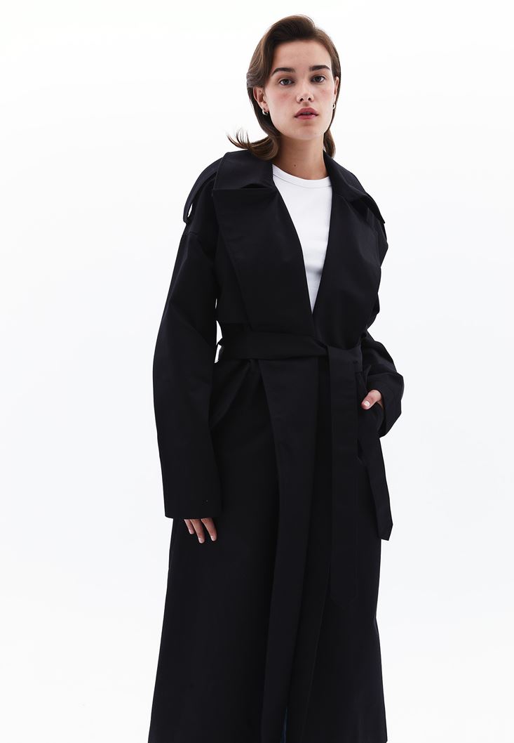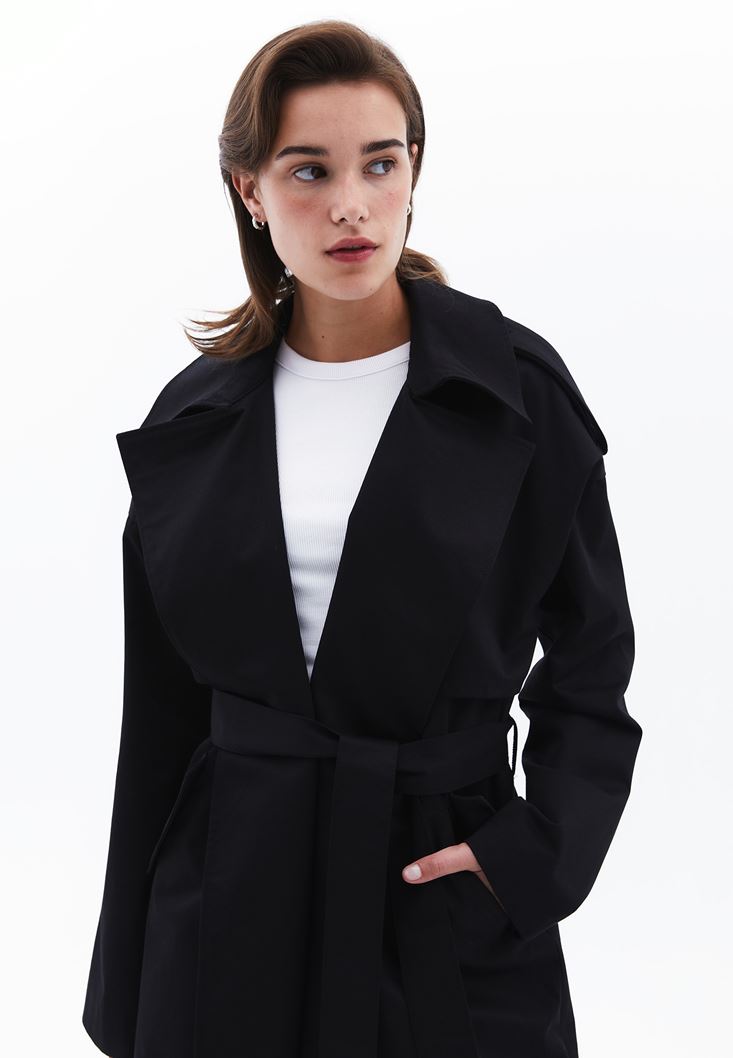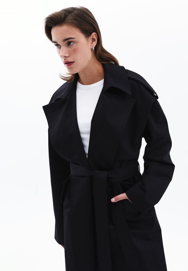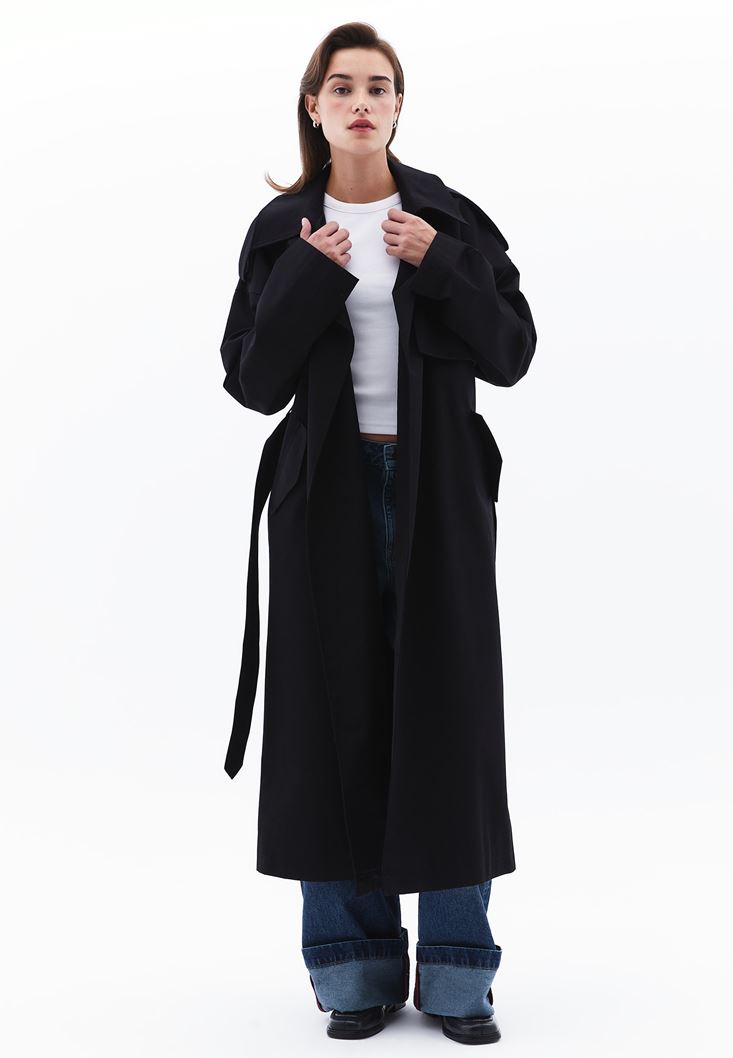 Siyah Kemer Detaylı Trençkot