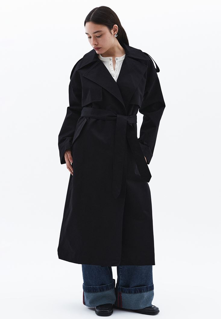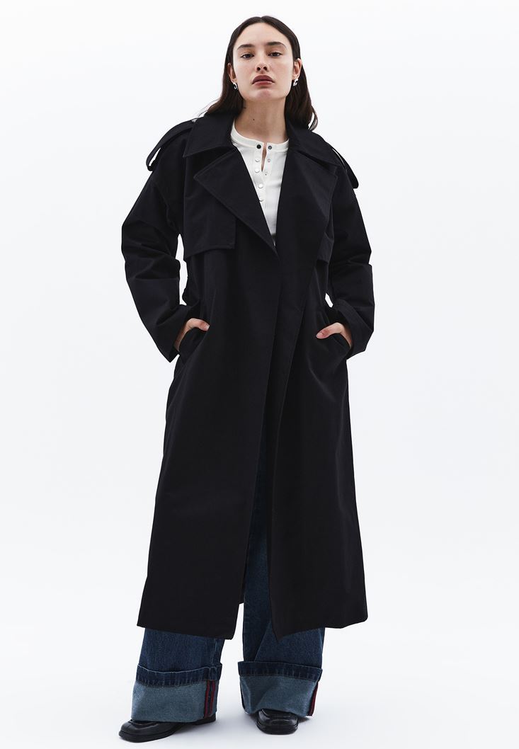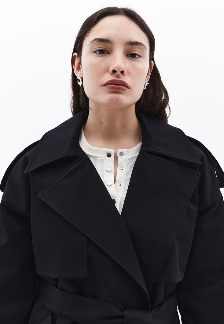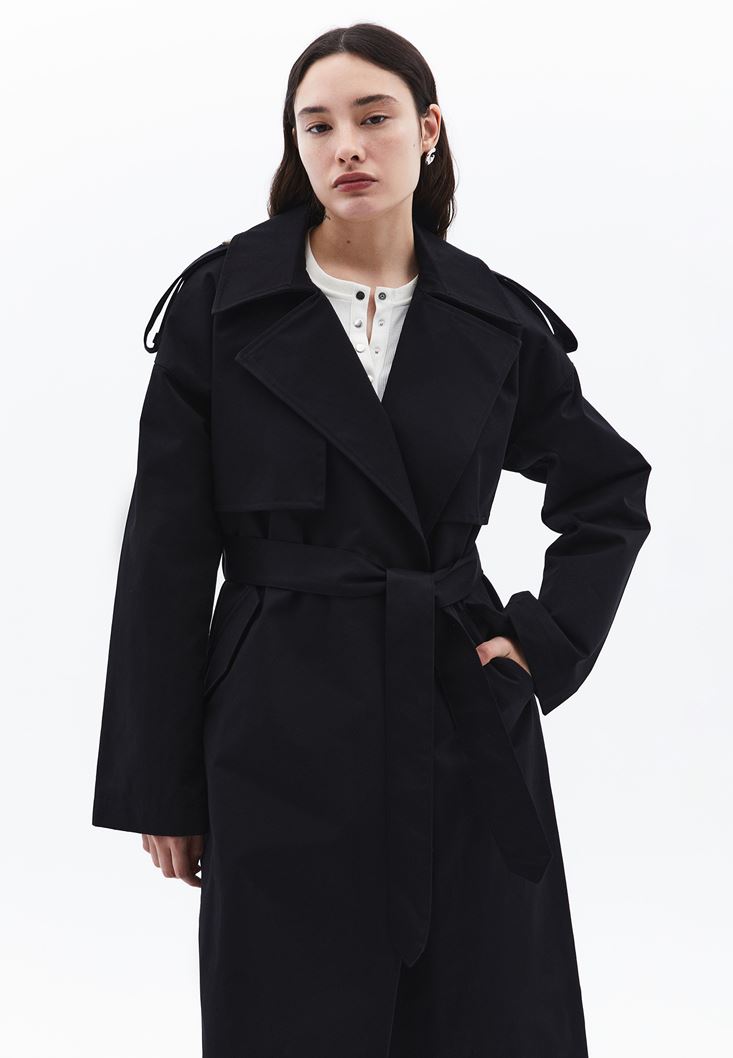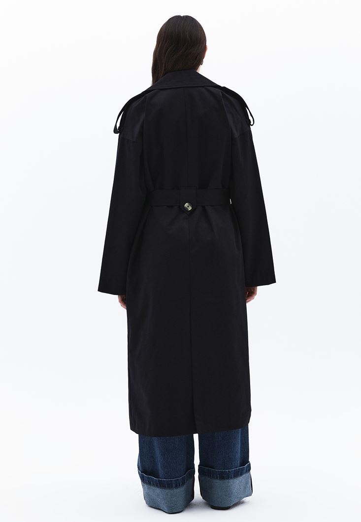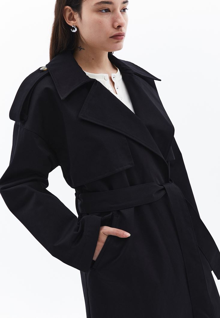 %100 pamuklu doğal doku, bedenden uzak loose fit, kendi kumaşından kemerli, iki cepli, omuzları apolet detaylı, içi astarlı.