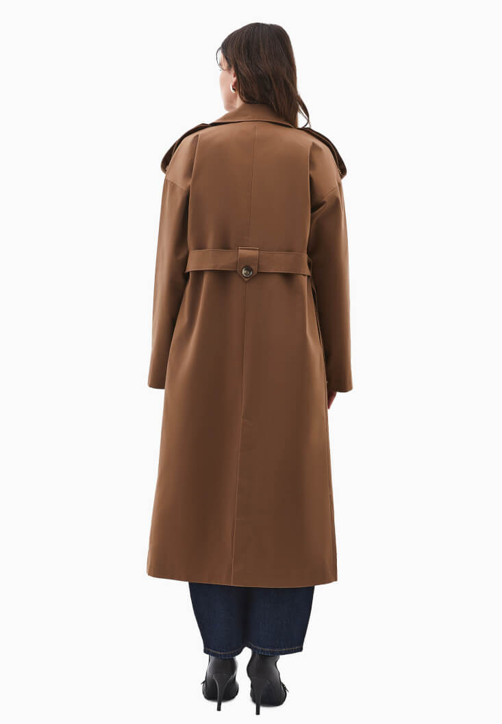 • Bayan Kahverengi Kemer Detaylı Trençkot