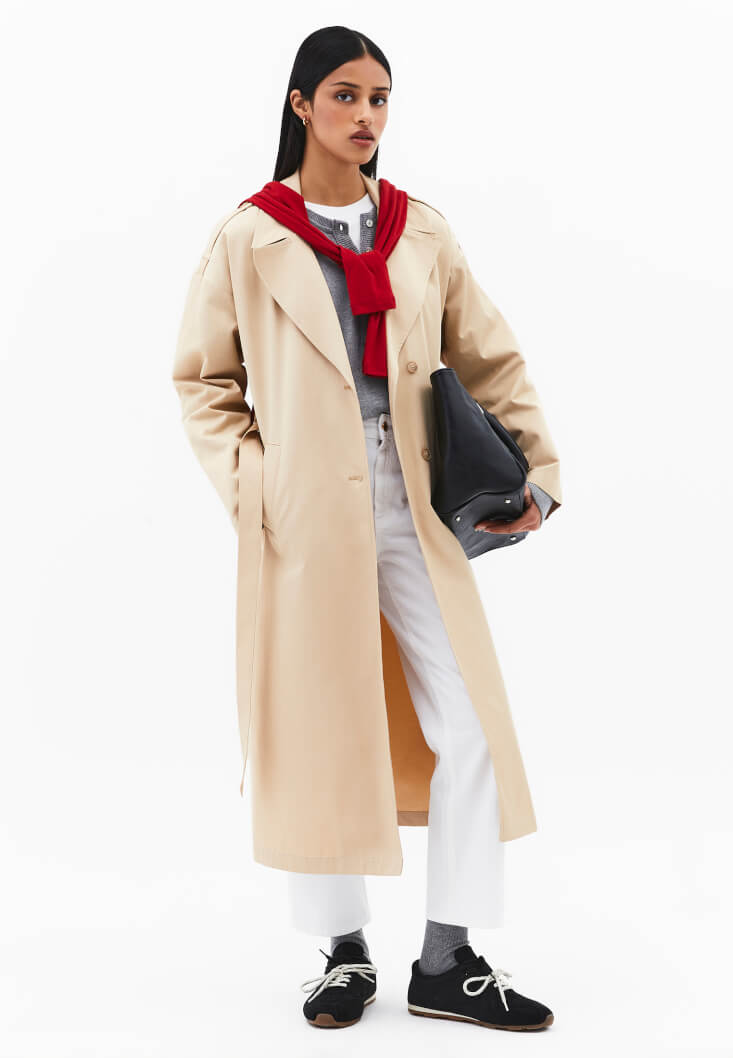 • Bayan Bej Kemer Detaylı Trençkot