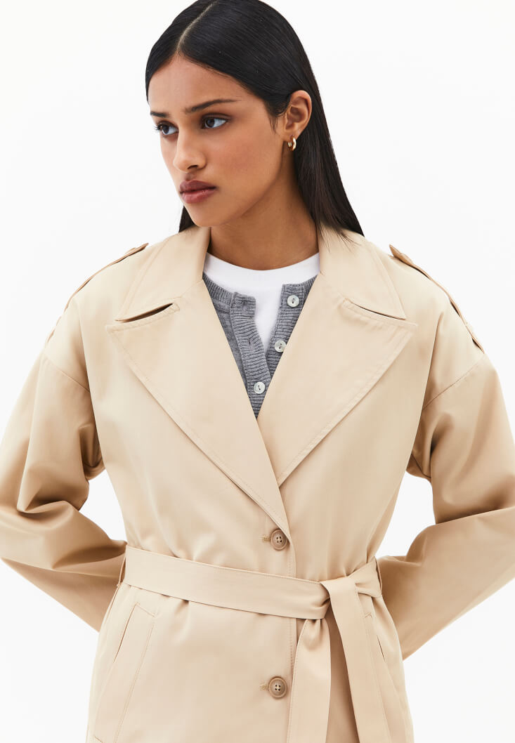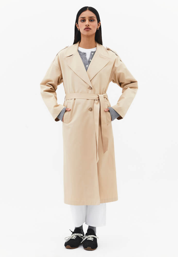 Bej Kemer Detaylı Trençkot