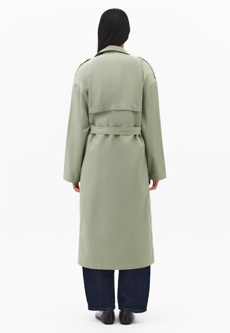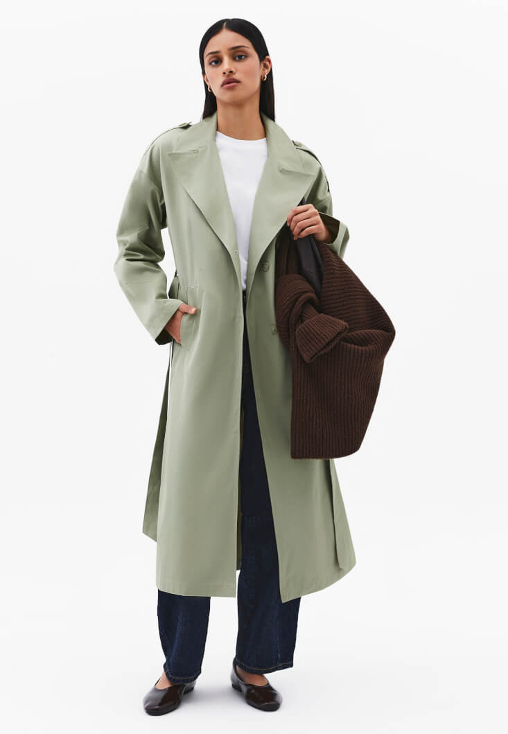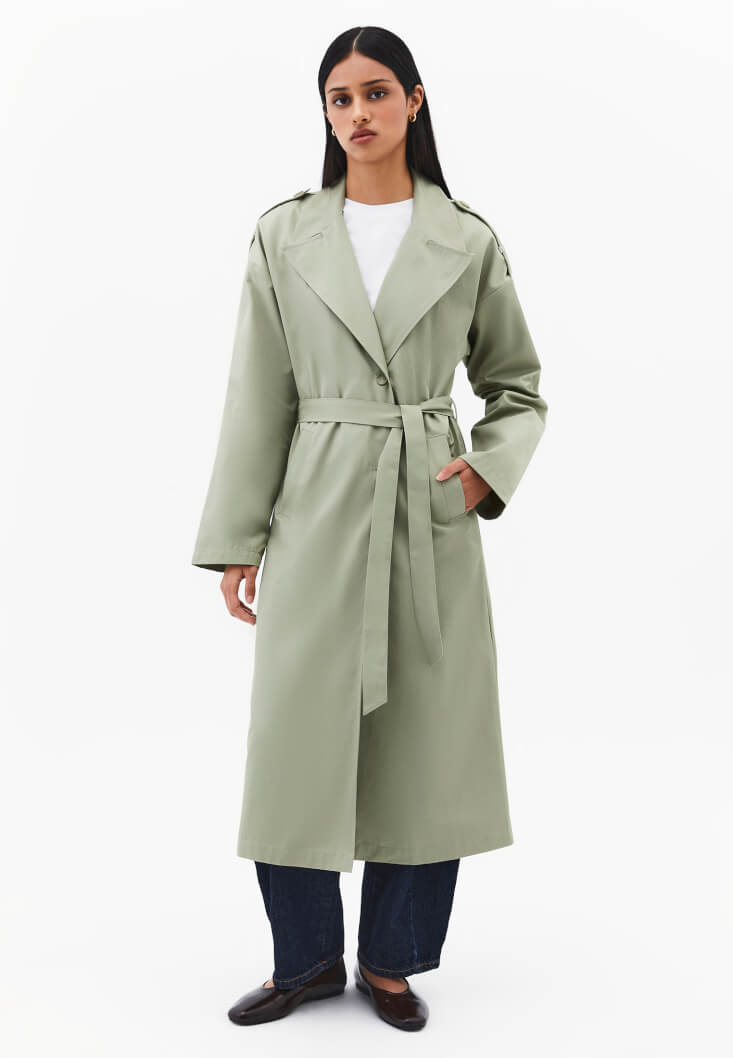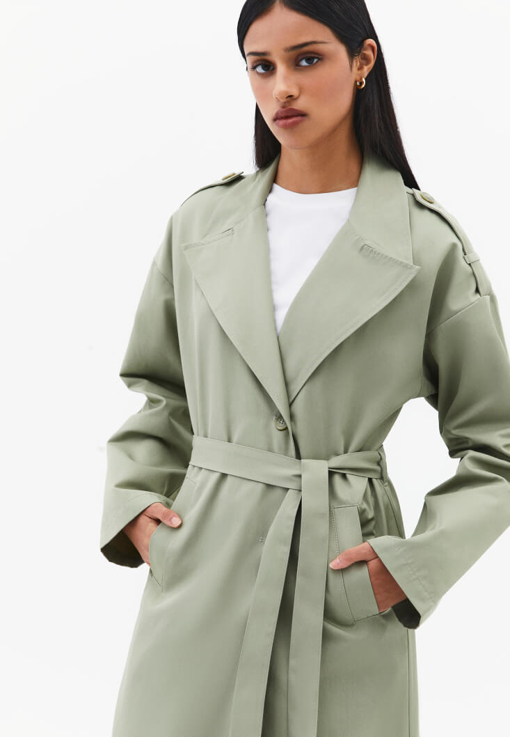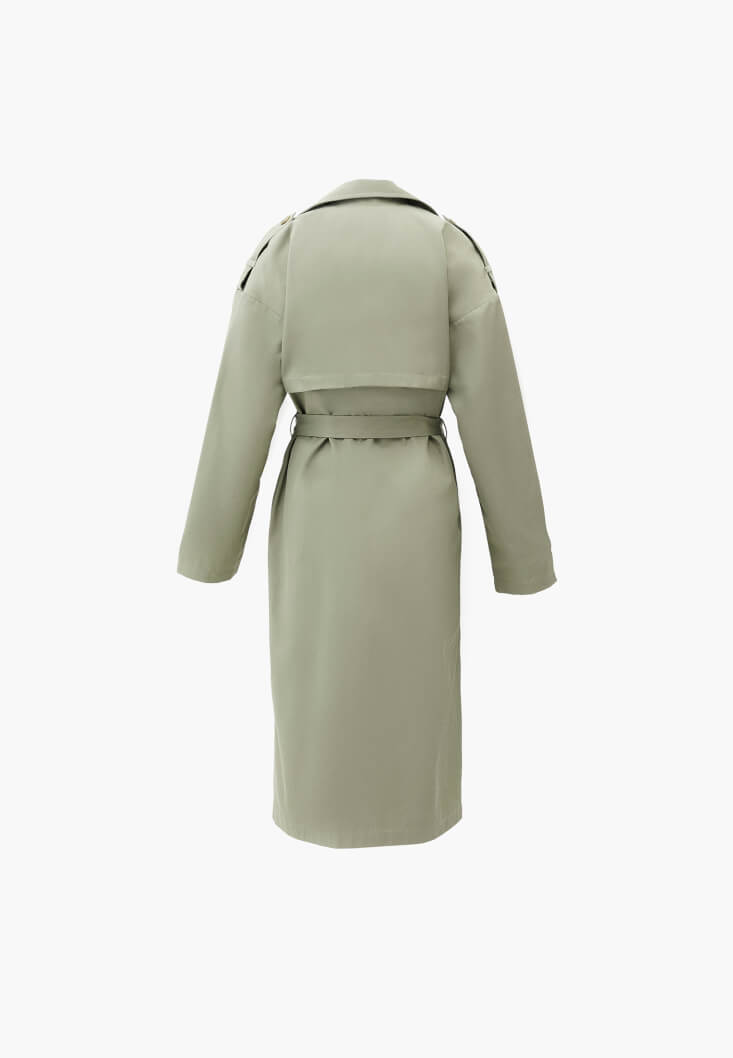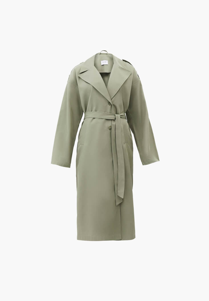 • Bayan Yeşil Kemer Detaylı Trençkot