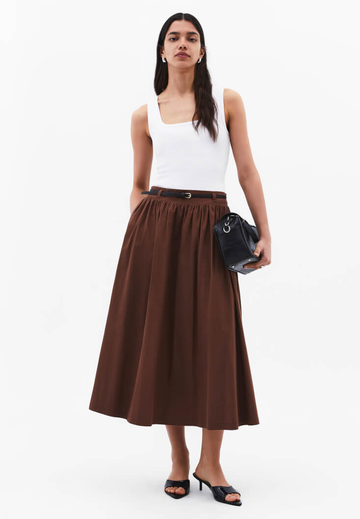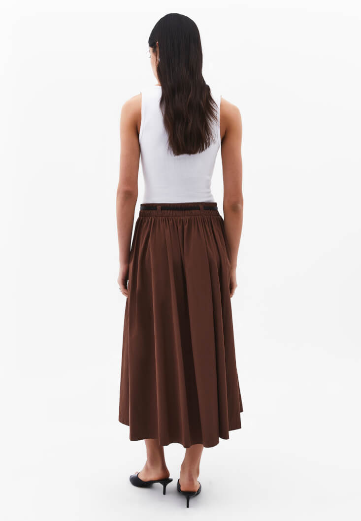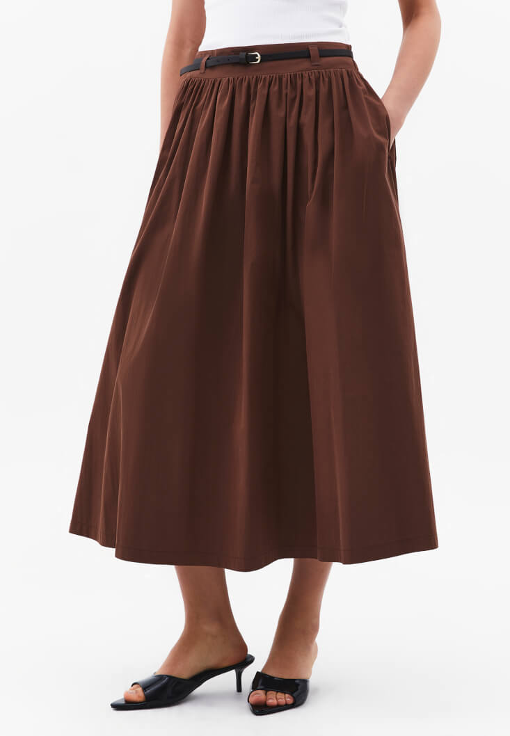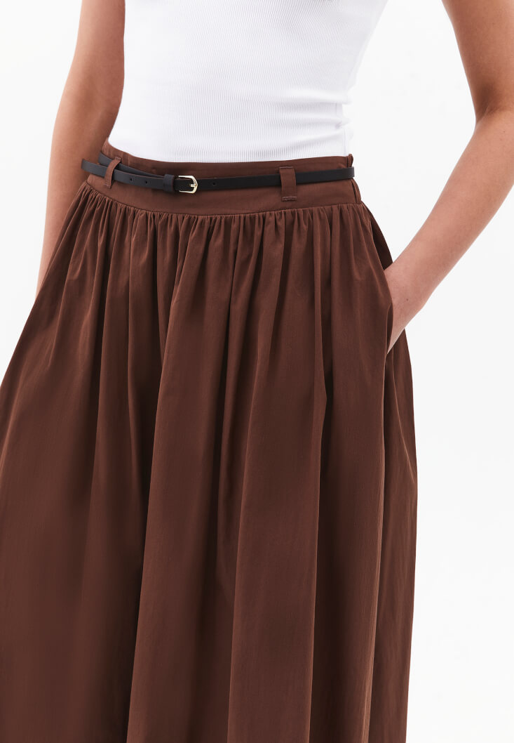 Kahverengi Kemer Detaylı Uzun Etek