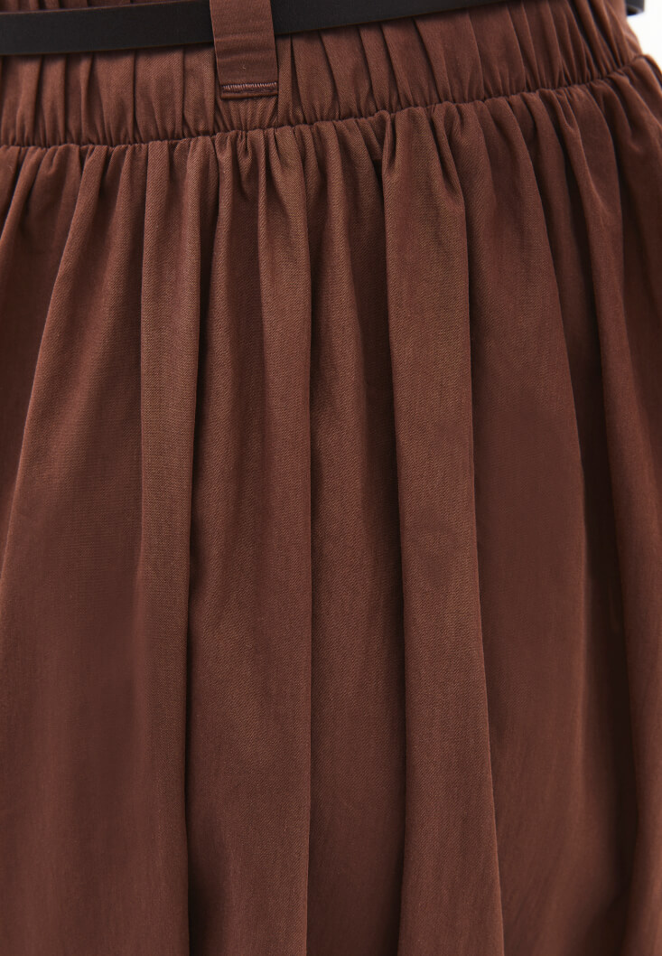 • Bayan Kahverengi Kemer Detaylı Uzun Etek