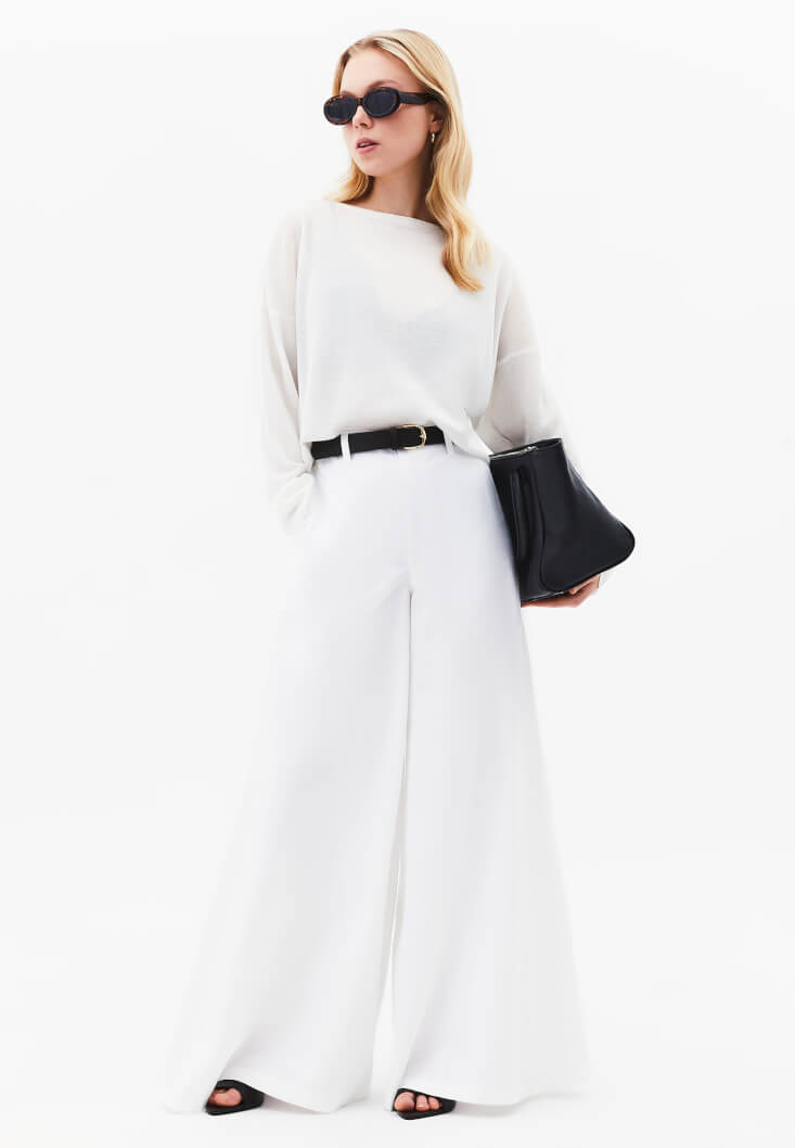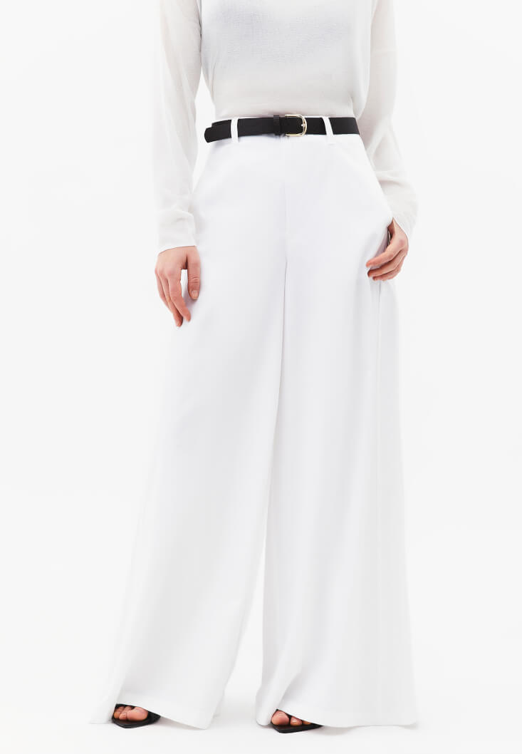 • Bayan Beyaz Kemer Detaylı Wide-Leg Pantolon ( TENCEL™ )