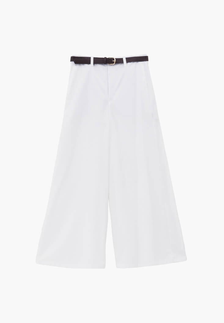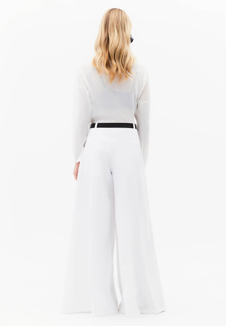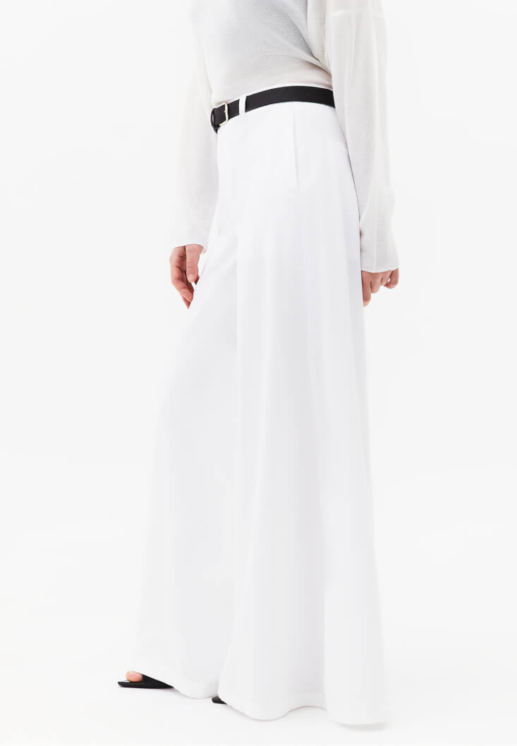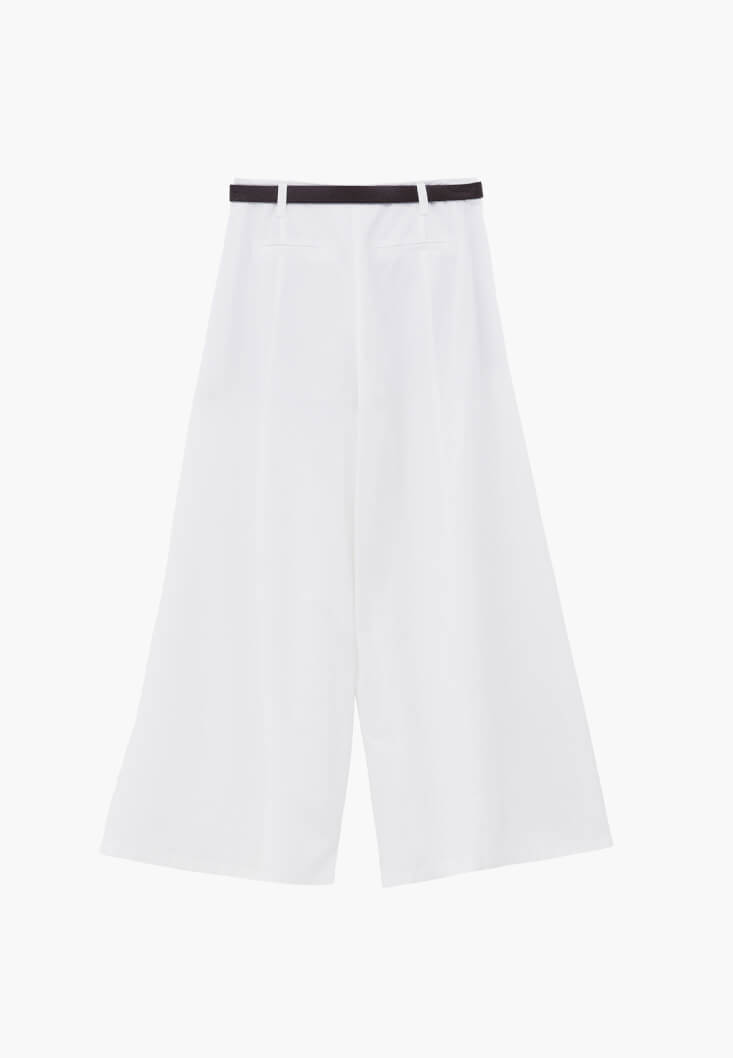 Beyaz Kemer Detaylı Wide-Leg Pantolon ( TENCEL™ )