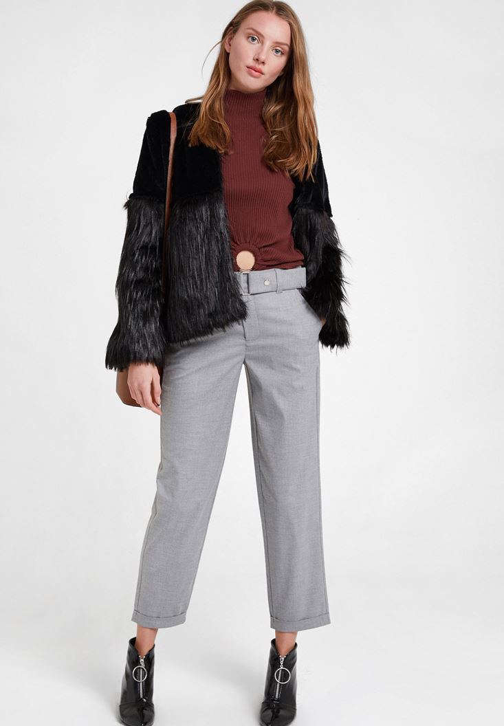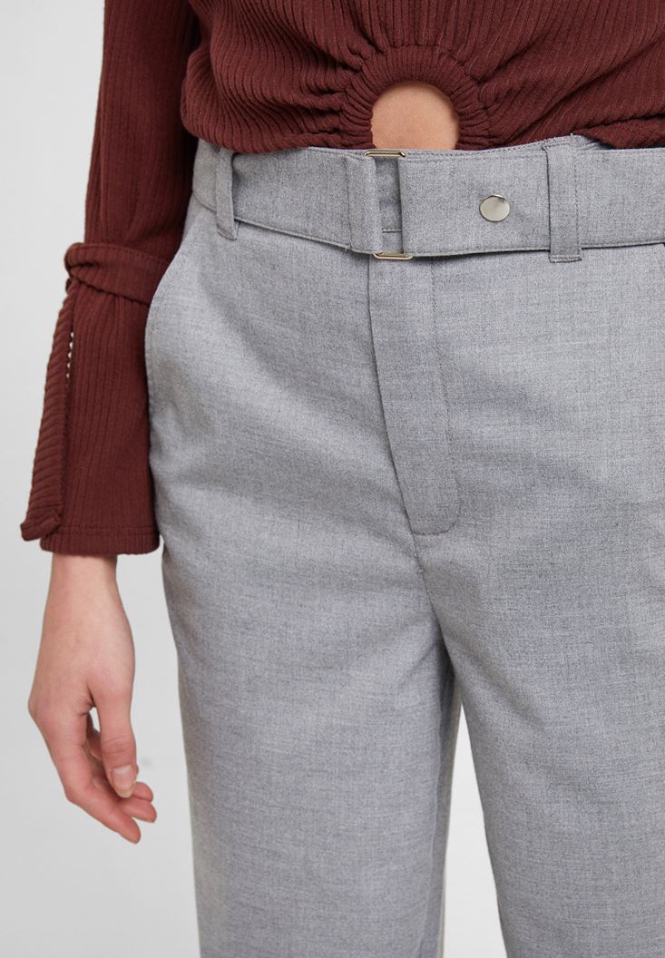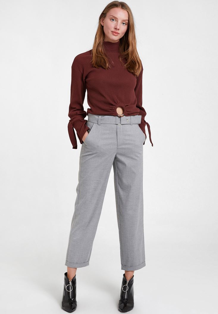 • Bayan Gri Kemerli Bol Paça Pantolon