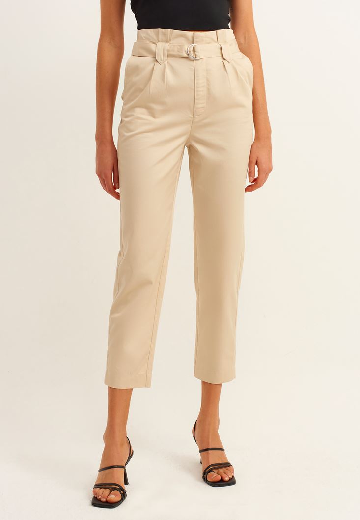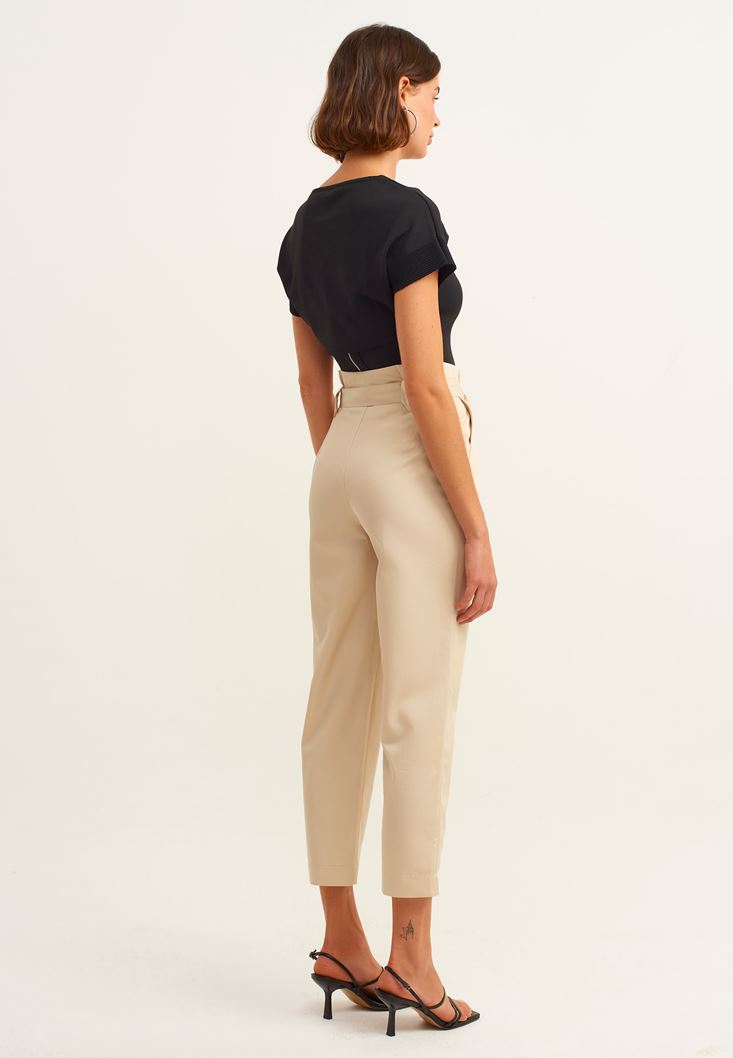 • Bayan Bej Kemerli Carrot-Fit Pantolon ( TENCEL™ )