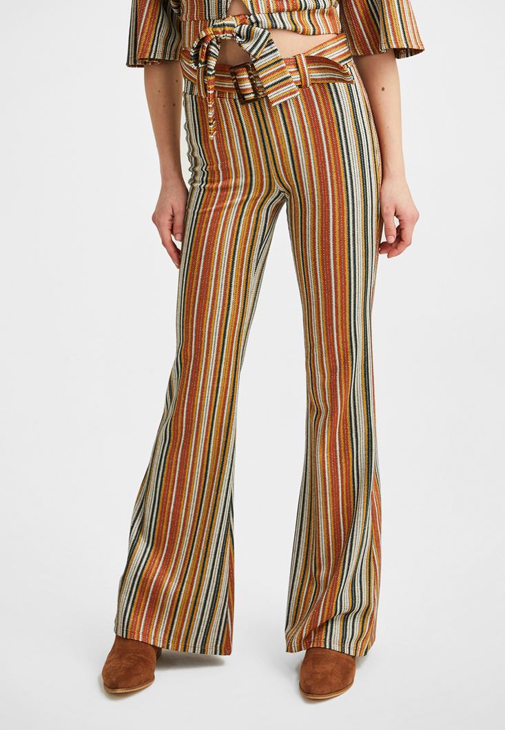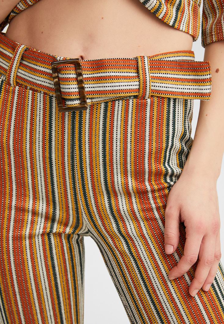 • Bayan Çok Renkli Kemerli Flare Paça Pantolon